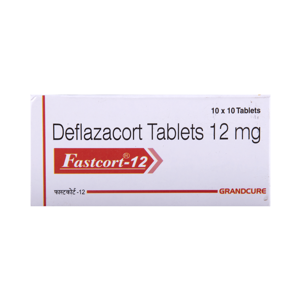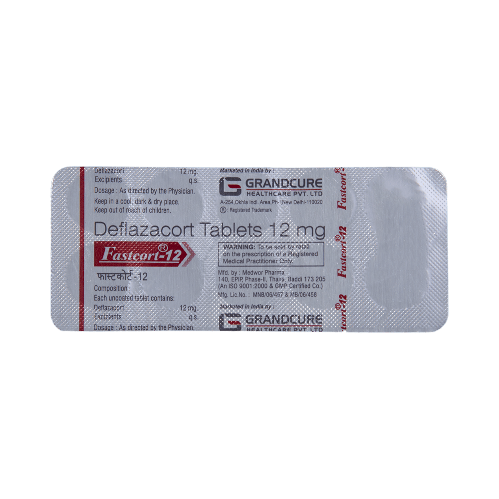 Fastcort 12 Tablet belongs to a group of medicines called steroids. It is used for the treatment of various diseases and conditions such as inflammatory conditions and autoimmune conditions. Fastcort 12 Tablet works by inhibiting the release of substances that cause swelling or by changing how the immune system works. It can be taken on an empty stomach or after food. Taking the medicine regularly at the right times increases its effectiveness. It is important to keep taking the medicine regularly until your doctor tells you it is safe to stop.Use of this medicine may cause some common side effects such as increased appetite, weight gain, frequent urge to urinate, Cushing syndrome, cough, upper respiratory tract infection, abnormal hair growth, obesity, and nasopharyngitis. If any of these side effects bother you, let your doctor know.Fastcort 12 Tablet can make it harder for you to fight off infections. Tell your doctor if you have any signs of infection such as a fever or sore throat. Before taking the medicine, you should let your doctor know of all the other medicines you are taking. Pregnant and breastfeeding women should consult their doctors before taking the medicine.