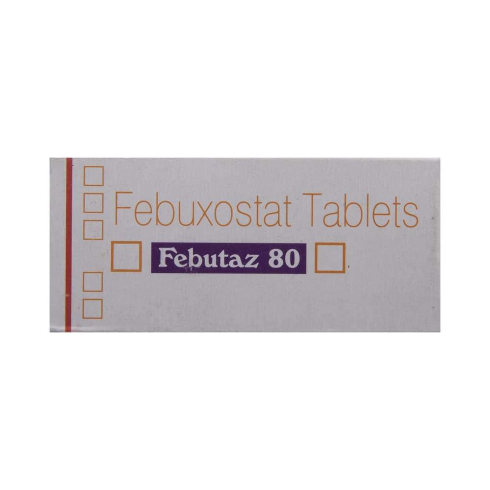 Febutaz 80 Tablet is a medicine used to treat and prevent gout. Gout happens when there is too much uric acid in your body and it forms into crystals that can appear around your joints leading to painful and swollen joints. This medicine helps to keep uric acid levels low. Febutaz 80 Tablet can be taken with or without food. You should keep taking it as recommended by your doctor even when you are not having a gout attack. If you stop, your symptoms may get worse because of the formation of more crystals in your joints. You can help yourself by making some changes to your diet (eg. avoiding alcohol and non-vegetarian foods) and drinking plenty of fluids.Some of the common side effects of this medicine are liver function abnormalities, nausea, joint pain, and rashes. You may experience a temporary increase in the gout symptoms (rapid onset of severe pain, warmth, and redness in the joint) when you first start taking the medicine. However, do not stop taking the medicine. Your doctor may suggest some painkillers and additional medicines to help reduce or prevent these symptoms. Tell your doctor right away if you get any symptoms of liver disease like persistent nausea, dark urine, or yellowing of the eyes or skin.Before taking this medicine, let your doctor know if you have any heart problems, stroke, thyroid problems, or kidney or liver problems. If you are pregnant or breastfeeding, this medicine is best avoided. Check with your doctor. You will need regular blood tests while taking this medicine to check that your liver is working properly.