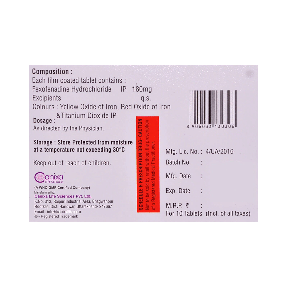 In Treatment of Sneezing and runny nose due to allergiesFenixa 180 Tablet provides relief from symptoms such as sneezing, itching, watery eyes, and runny nose. This will make it easier for you to go about your daily activities. It rarely has any serious side effects and you may only need to take it on days you have symptoms. If you are taking it to prevent getting symptoms you should use it regularly to get the most benefit.