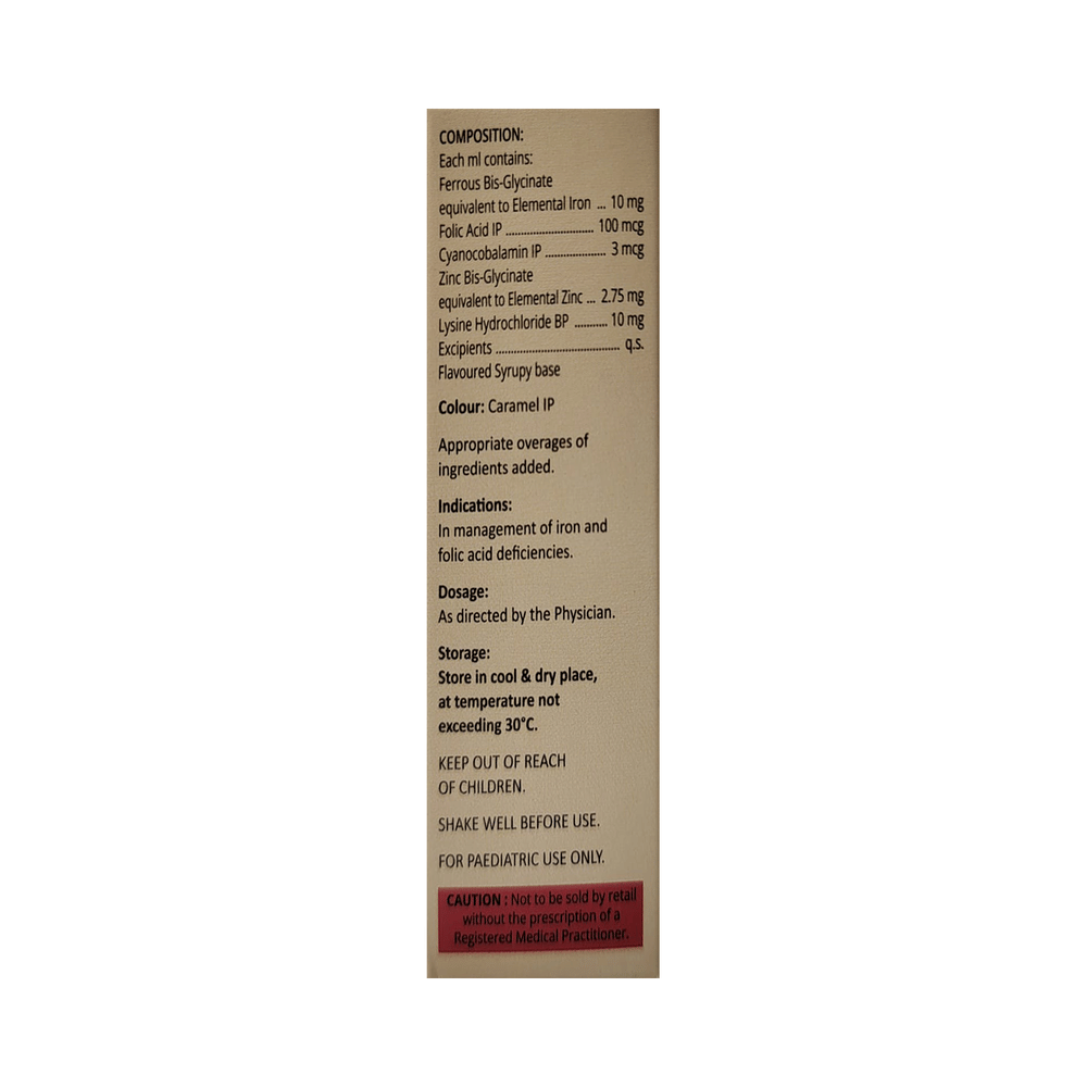 Salt Composition: Iron (10mg) + Zinc (2.75gm) + Folic Acid (100mcg) + Vitamin B12 (3mcg)