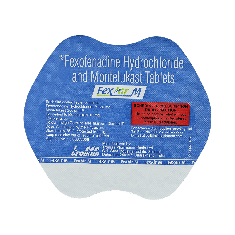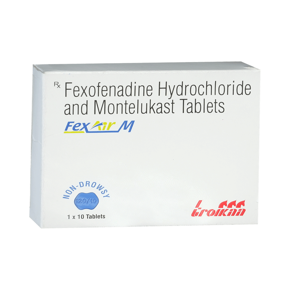 In Treatment of Sneezing and runny nose due to allergiesFexair M 10mg/120mg Tablet is a combination medicine that provides relief from symptoms such as blocked or runny nose, sneezing and itchy or watery eyes. This will make it easier for you to go about your daily activities. It rarely has any serious side effects and you may only need to take it on days you have symptoms. If you are taking it to prevent getting symptoms you should use it regularly to get the most benefit.
