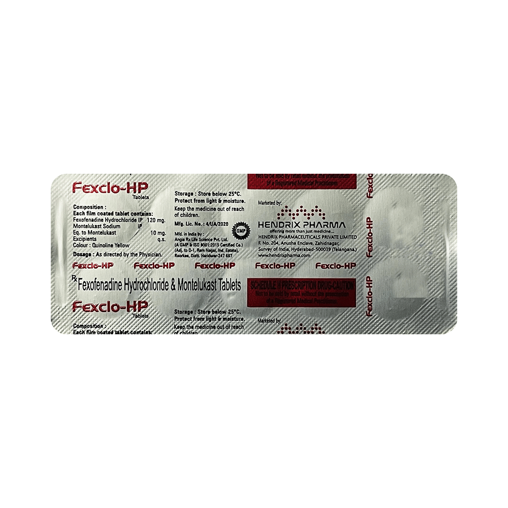 In Treatment of Sneezing and runny nose due to allergiesFexclo-HP Tablet is a combination medicine that provides relief from symptoms such as blocked or runny nose, sneezing and itchy or watery eyes. This will make it easier for you to go about your daily activities. It rarely has any serious side effects and you may only need to take it on days you have symptoms. If you are taking it to prevent getting symptoms you should use it regularly to get the most benefit.