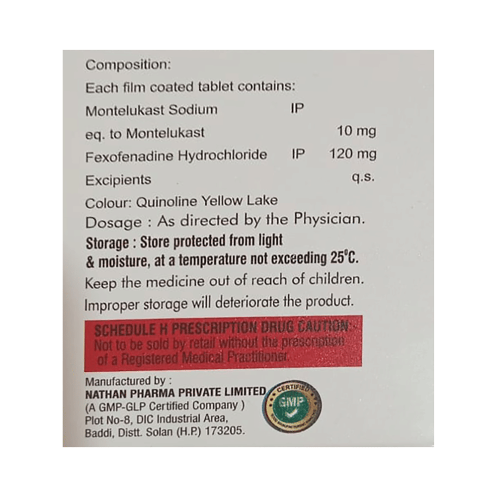Salt Composition: Montelukast (10mg) + Fexofenadine (120mg)