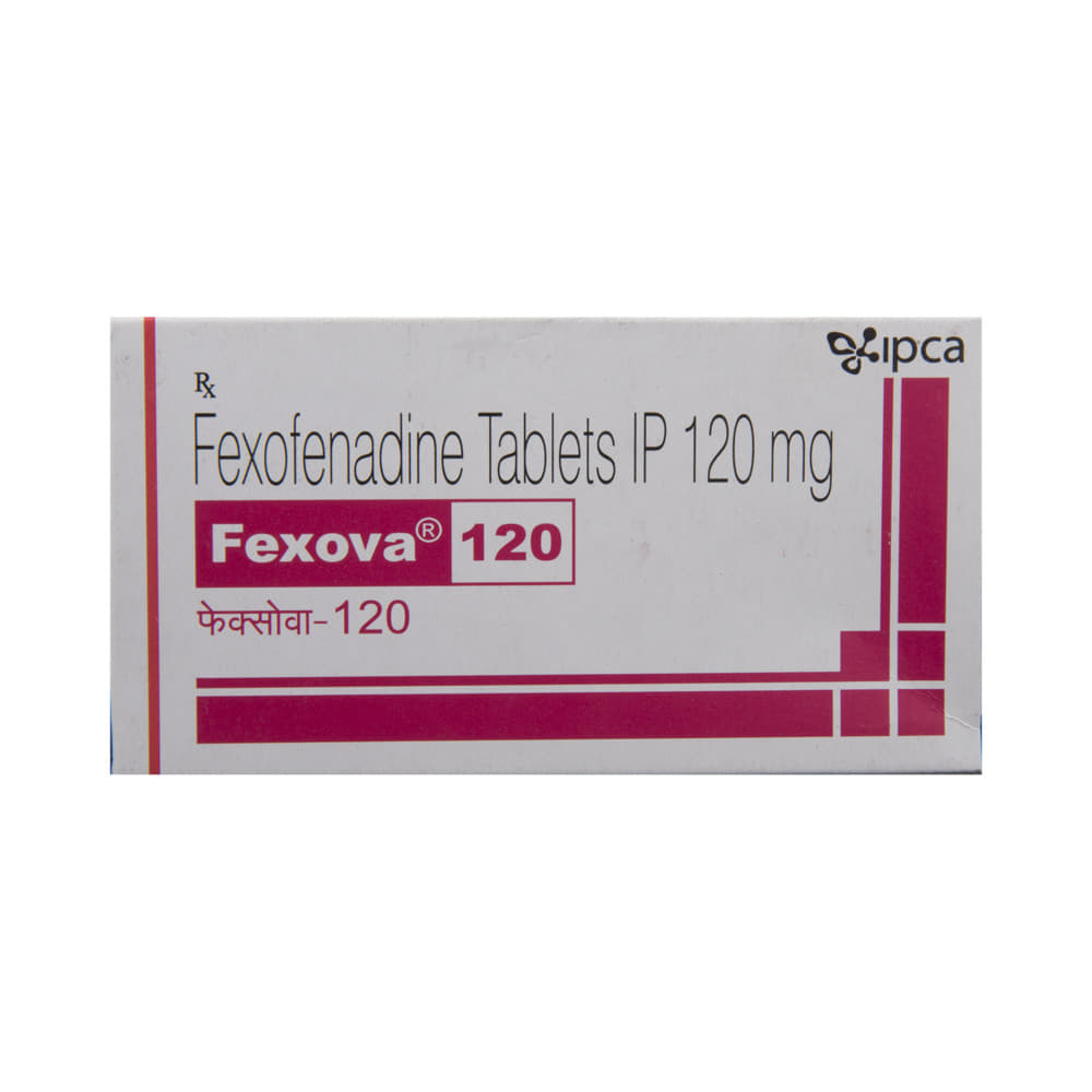 Fexova 120 Tablet is an anti-allergy medicine used in the treatment of allergic symptoms such as runny nose, congestion or stuffiness, sneezing, itching, swelling, and watery eyes. It also helps treat skin allergies with itching, redness, or swelling. Fexova 120 Tablet may be taken with or without food, in the dose and duration as advised by the doctor. The dose you are given will depend on your condition and how you respond to the medicine. You should keep taking this medicine for as long as your doctor recommends. Do not stop taking it without consulting your doctor.The most common side effects are headache, drowsiness, dizziness, and nausea. Most of these are temporary and usually resolve with time. Please consult your doctor if any of these side effects do not resolve or persist for a longer duration.Do not self-medicate or recommend your medicine to another person even if you see the similarity in symptoms. Consult your doctor to get the most benefit. Inform your doctor if you are suffering from any problems related to the kidneys, liver, or heart. Pregnant and breastfeeding mothers should not take this medicine without consulting a doctor.