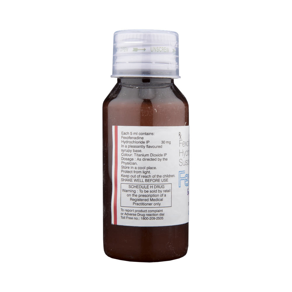 Fexy Oral Suspension is usually given to children to treat a wide range of symptoms caused due to allergic conditions such as hay fever, urticaria (hives), conjunctivitis (red, itchy eye), and common cold. These symptoms include watery eyes, runny nose, sneezing, and itching among others. Give Fexy Oral Suspension to your child by mouth with or without food in the dose and way prescribed by the doctor. It may be prescribed alone or in combination with other medicines. The allergic symptoms may subside after your child has taken the initial few doses of Fexy Oral Suspension. In case of serious allergic conditions, your child may have to continue taking the medicine for a week or two. If your child vomits within 30 minutes of taking this medicine, let the child calm down and give the same dose again. However, do not repeat the dose if it is already time for the next dose.The intake of the medicine may cause some minor and temporary side effects like nausea, vomiting, dizziness, sleepiness, and headache. These side effects should ideally diminish on their own. But, in case they persist or start bothering your child, it would be best to consult your child’s doctor without any delay.Inform your child’s doctor if your child is on any medical regime or is allergic to any medicine, product, or food. Make sure the doctor knows if your child has or had any heart, liver, kidney problems or was born prematurely. Any history regarding bowel obstruction, malnutrition, weight-related issues, and thyroid problems should also be well indicated to the doctor to avoid any complications in the treatment. Knowing the entire medical history will help your child’s doctor make dose alterations and plan your child’s overall treatment better.