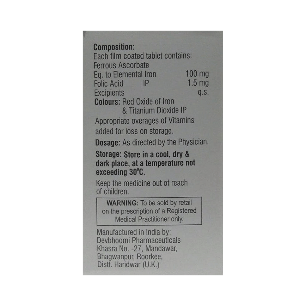 Salt Composition: Ferrous Ascorbate (100mg) + Folic Acid (1.5mg)