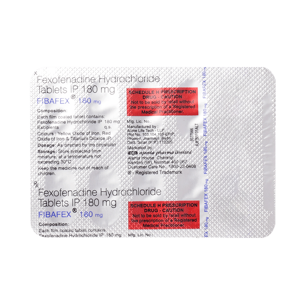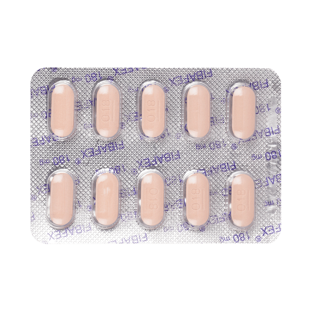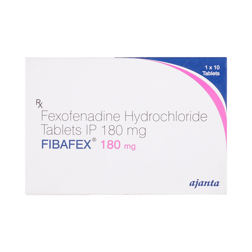 Fibafex 180mg Tablet is an anti-allergy medicine used in the treatment of allergic symptoms such as runny nose, congestion or stuffiness, sneezing, itching, swelling, and watery eyes. It also helps treat skin allergies with itching, redness, or swelling. Fibafex 180mg Tablet may be taken with or without food, in the dose and duration as advised by the doctor. The dose you are given will depend on your condition and how you respond to the medicine. You should keep taking this medicine for as long as your doctor recommends. Do not stop taking it without consulting your doctor.The most common side effects are headache, drowsiness, dizziness, and nausea. Most of these are temporary and usually resolve with time. Please consult your doctor if any of these side effects do not resolve or persist for a longer duration.Do not self-medicate or recommend your medicine to another person even if you see the similarity in symptoms. Consult your doctor to get the most benefit. Inform your doctor if you are suffering from any problems related to the kidneys, liver, or heart. Pregnant and breastfeeding mothers should not take this medicine without consulting a doctor.