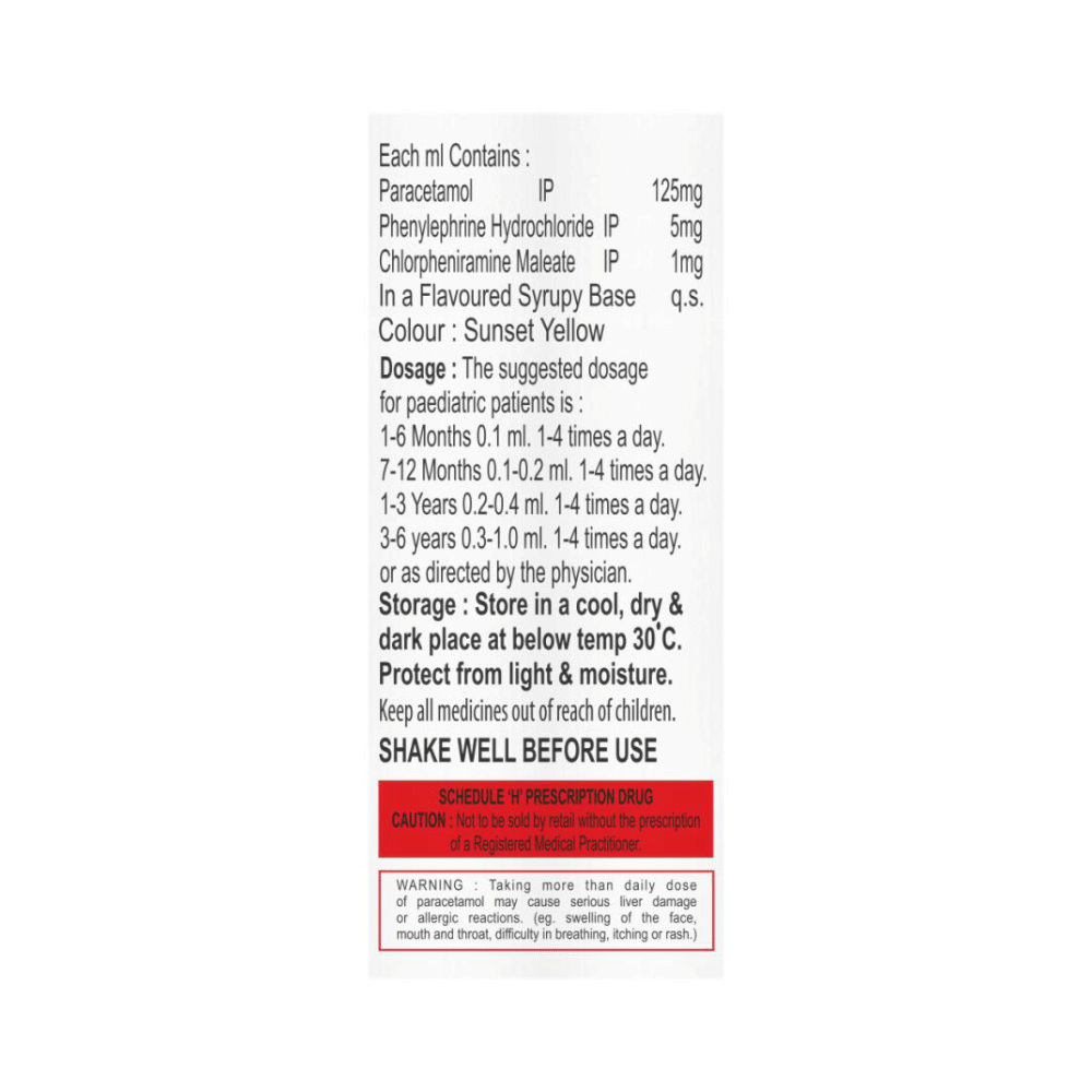 Salt Composition: Chlorpheniramine Maleate (1mg) + Paracetamol (125mg) + Phenylephrine (5mg)