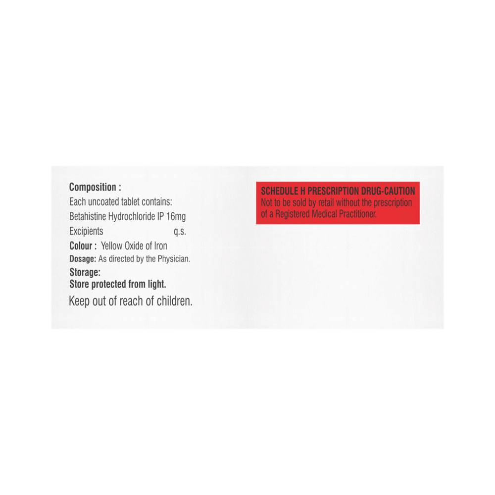 Fibohist 16 Tablet is used to prevent and treat a disorder of the inner ear known as Ménière’s disease. The symptoms include dizziness (vertigo), ringing in the ears (tinnitus), and loss of hearing, probably caused by fluid in the ear. This medicine helps relieve the symptoms by reducing the amount of fluid. Fibohist 16 Tablet should be swallowed whole with water and taken at the same time(s) each day to get the most benefit. Your doctor will decide what is the correct dose to relieve your symptoms and how often you need to take it. You may need to take this medicine for several months and you should take it for as long as prescribed by your doctor, even if you start feeling better. The most common side effects include headache, feeling sick, and indigestion (dyspepsia). You may also get stomach pain and bloating. Taking the medicine with food can help reduce stomach problems.  Before taking this medicine, you should talk to your doctor if you have a stomach ulcer, asthma, or high or low blood pressure. You must also tell him/her what other medicines you are taking, to make sure you are safe. Also speak to your doctor if you are pregnant, trying to become pregnant, or breastfeeding.