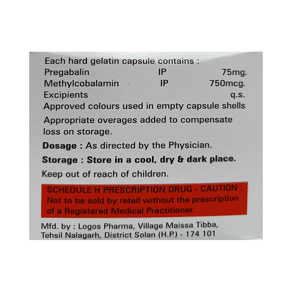 Salt Composition: Methylcobalamin (750mcg) + Pregabalin (75mg)