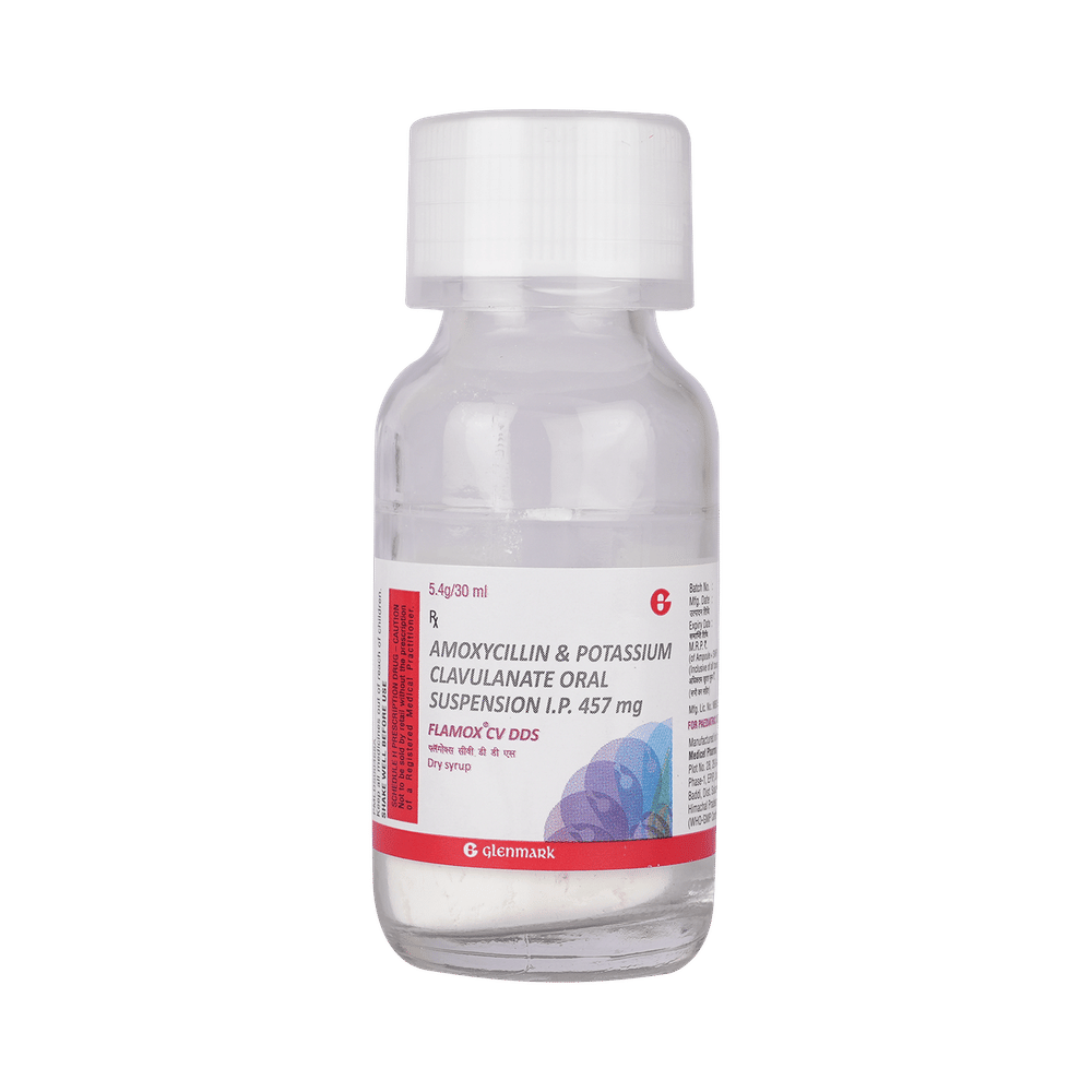 Flamox CV Dds Dry Syrup is an antibiotic. It has two active agents, amoxycillin and clavulanic acid. Amoxycillin works by preventing the formation of the bacterial protective covering (cell wall) essential for the survival of the bacteria. Whereas, clavulanic acid serves a special purpose of inhibiting an enzyme (beta-lactamase) that is produced by resistant bacteria. This makes the combination of amoxycillin and clavulanic acid an effective line of treatment for many types of infections.