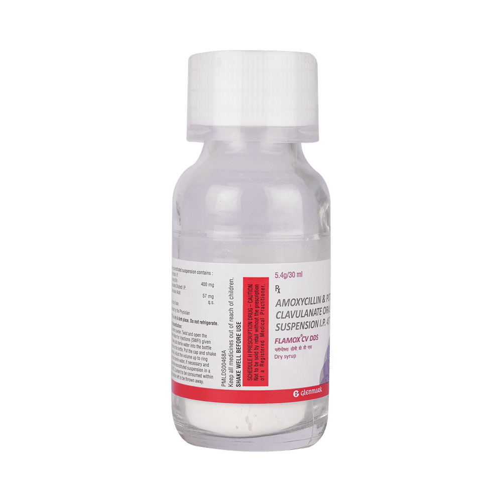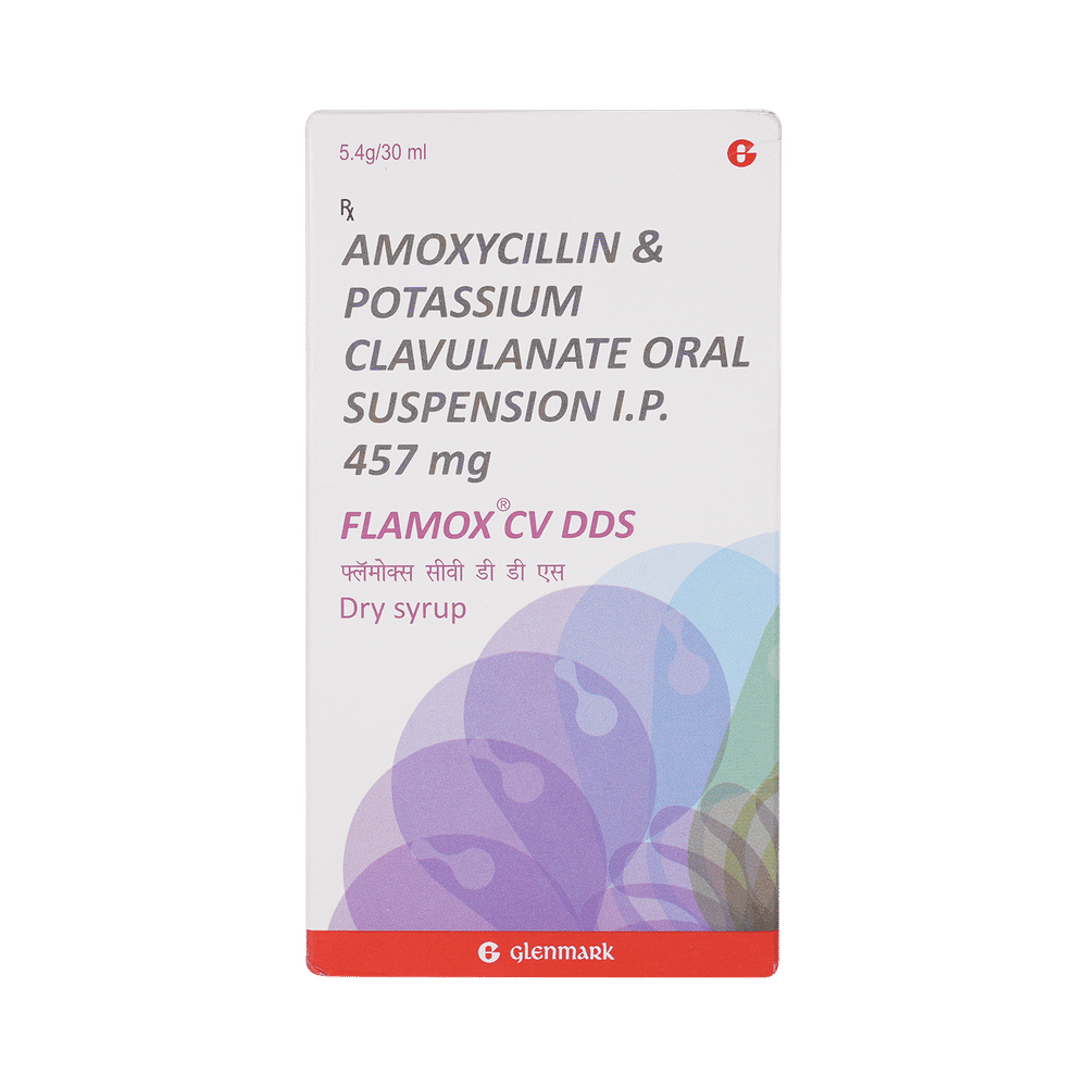 Flamox CV Dds Dry Syrup is an antibiotic medicine that helps treat bacterial infections of the ear, nose, throat, chest, lungs, teeth, skin, and urinary tract. It is capable of killing bacteria that have become resistant to other therapies and thus also helps treat tuberculosis that is resistant to other treatments. You can give Flamox CV Dds Dry Syrup to your child with or without food. It is better to give it with food as that helps increase absorption and decrease the risk of stomach upset. The doctor may prescribe giving it two to three times a day. Medicine dose depends on the severity of the infection, its type, and your child’s body weight and age. So, stick to the dose, time, and way prescribed. If your child vomits the medicine within 30 minutes of intake, let the child calm down and repeat the dose. Do not double dose if it's the time for the next dose.Flamox CV Dds Dry Syrup may cause vomiting, diarrhea, nausea, abdominal pain, and allergy. These side effects should diminish on their own. But, in case they persist or start bothering your child, you must not delay speaking to your child’s doctor.Share your child’s entire medical history with the doctor, including any previous episode of allergy, heart problem, blood disorder, birth defects, airway obstruction, lung anomaly, gastrointestinal problem, skin disorder, liver impairment, and kidney malfunction. This information will assist the doctor in making dose alterations and for planning your child’s overall treatment.