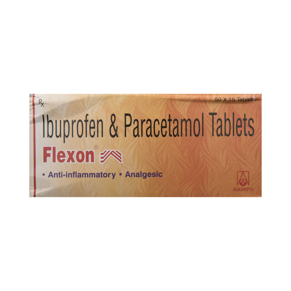 In Pain reliefFlexon Tablet contains two medicines: Paracetamol and Ibuprofen both of which are widely used as pain killers. They work in different ways to reduce pain, swelling, and inflammation. This medicine is very effective in treating mild to moderate pain associated with migraine, headache, backache, period (menstrual) pain, dental pain, and rheumatic and muscular pain. The anti-inflammatory component makes this medicine more effective in treating strains, sprains, and muscle pains.Take it as it is prescribed to get the most benefit. Do not take too much as this can be dangerous and do not take it for longer than you need it. In general, you should take the lowest dose that works, for the shortest possible time.In Treatment of FeverFlexon Tablet helps lower high temperature caused by fever. This medicine is effective in treating cold and flu symptoms, sore throat, and fever. Take it as it is prescribed to get the most benefit. Do not take too much or for longer than you need as this can be dangerous. In general, you should take the lowest dose that works, for the shortest possible time.show moreshow less