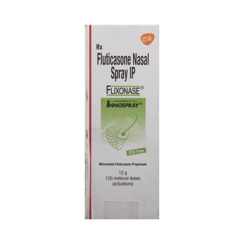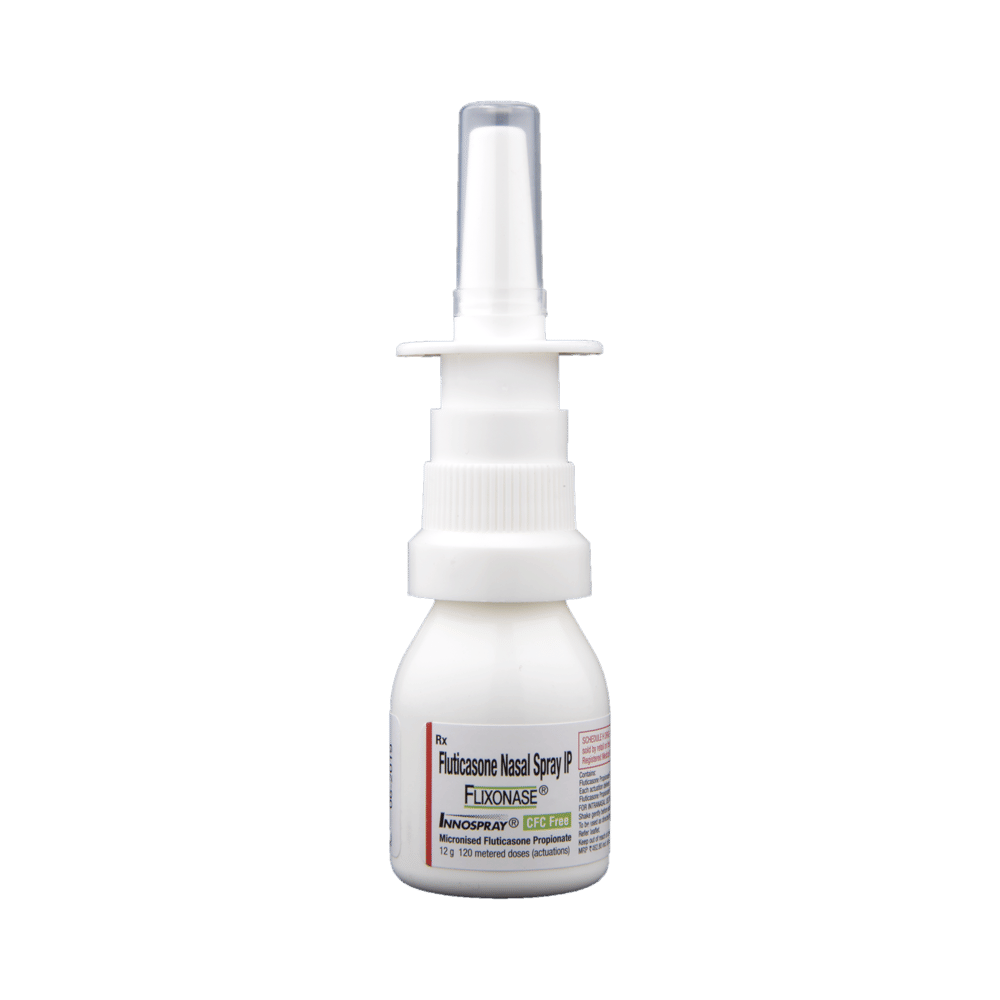 Flixonase CFC Free Innospray is a steroid. It relieves the symptoms of rhinitis (blocked nose) such as runny nose, sneezing, and sinus discomfort. It works by blocking the production of certain chemical messengers that cause inflammation (swelling) and allergies, thus relieving the discomfort and irritation in your nose. You should always use Flixonase CFC Free Innospray as advised by your doctor. To get the full benefit of the medicine you should use it regularly. Normally, you should blow your nose gently before using it, keep one nostril closed while applying the medicine into the other, and then sniff hard to make sure it reaches deep into the nose. Then repeat for the other nostril.Nasal irritation is a very common side effect of this medicine. It may also cause nosebleed and headaches in some patients. Talk to your doctor if you are worried about side effects or they do not go away. Using corticosteroids like this medicine makes you more susceptible to viral infections, so you should stay away from people who have these infections. In general, you should try to avoid situations which make your symptoms worse (things like pollen and dust mites) and it’s best not to smoke.Before using this medicine, you should let your doctor know if you are pregnant or breastfeeding. It is important to discuss the risks and benefits with your doctor. If you use this medicine for a long time, your doctor may want to carry out certain medical tests to check your progress.