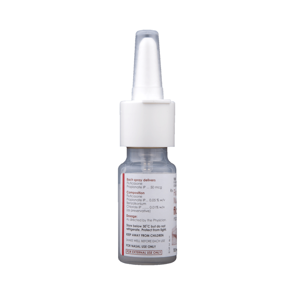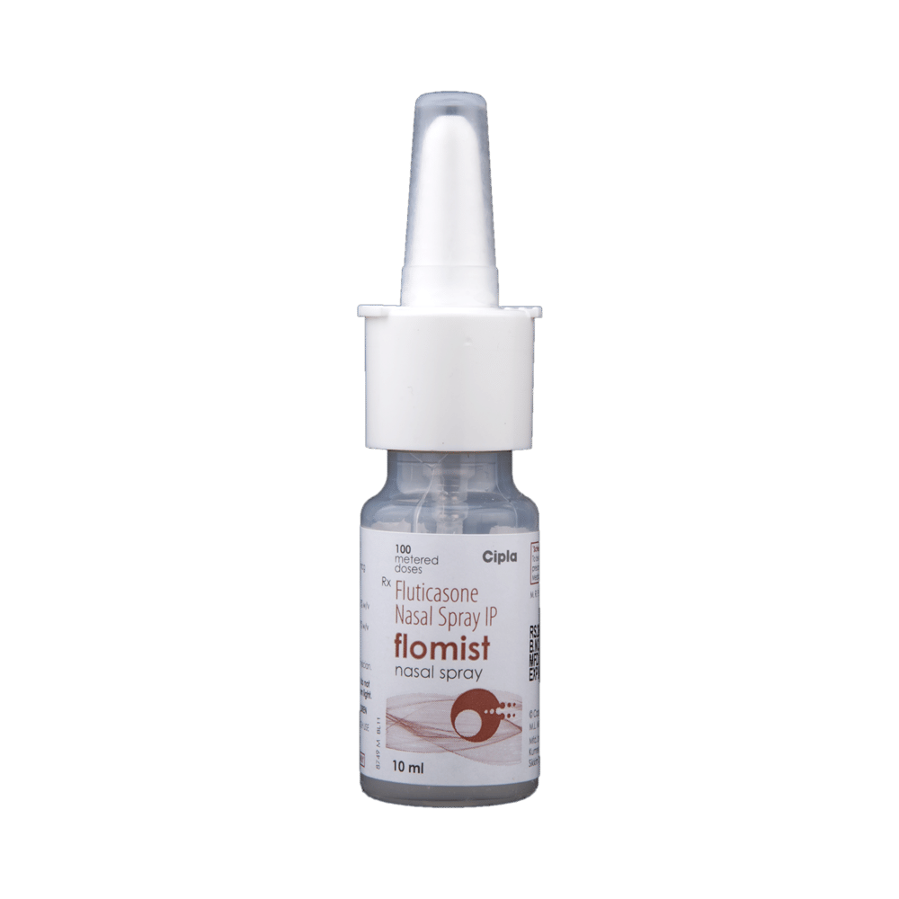 Flomist Nasal Spray is a steroid. It relieves the symptoms of rhinitis (blocked nose) such as runny nose, sneezing, and sinus discomfort. It works by blocking the production of certain chemical messengers that cause inflammation (swelling) and allergies, thus relieving the discomfort and irritation in your nose. You should always use Flomist Nasal Spray as advised by your doctor. To get the full benefit of the medicine you should use it regularly. Normally, you should blow your nose gently before using it, keep one nostril closed while applying the medicine into the other, and then sniff hard to make sure it reaches deep into the nose. Then repeat for the other nostril.Nasal irritation is a very common side effect of this medicine. It may also cause nosebleed and headaches in some patients. Talk to your doctor if you are worried about side effects or they do not go away. Using corticosteroids like this medicine makes you more susceptible to viral infections, so you should stay away from people who have these infections. In general, you should try to avoid situations which make your symptoms worse (things like pollen and dust mites) and it’s best not to smoke.Before using this medicine, you should let your doctor know if you are pregnant or breastfeeding. It is important to discuss the risks and benefits with your doctor. If you use this medicine for a long time, your doctor may want to carry out certain medical tests to check your progress.