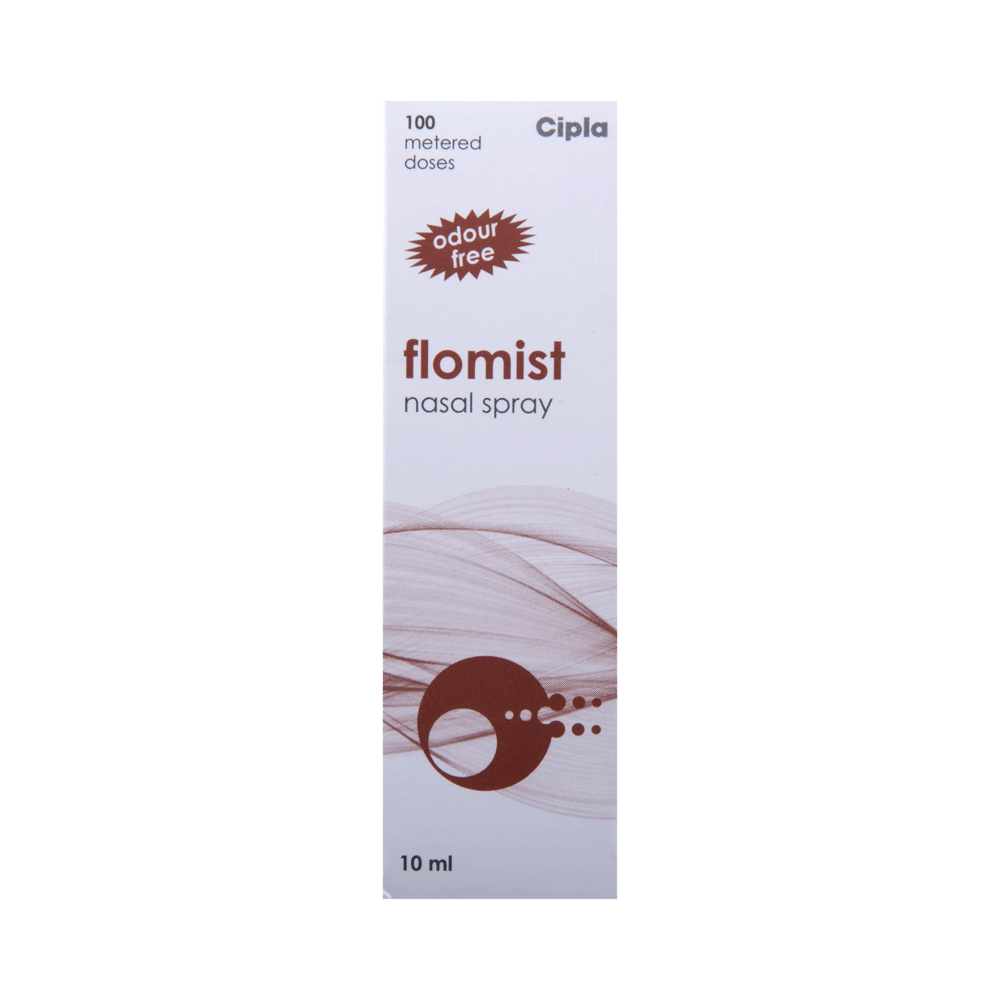 In Treatment of Sneezing and runny nose due to allergiesFlomist Nasal Spray belongs to a group of medicines called corticosteroids. When it is sprayed into your nose it will reduce swelling and irritation and relieve symptoms such as blocked or stuffy nose, sneezing, and itchy or watery eyes. It is less likely than some other medicines to cause high blood pressure or changes in your sodium or potassium levels. This medicine works in your nose to block the effects of substances like pollen, dust mites, and mould that can trigger allergic reactions. This will make it easier for you to go about your daily activities without worrying so much about getting an allergic reaction. It may not work straight away, so use it regularly as prescribed to get the most benefit. If you see no improvement after a week, talk to your doctor.