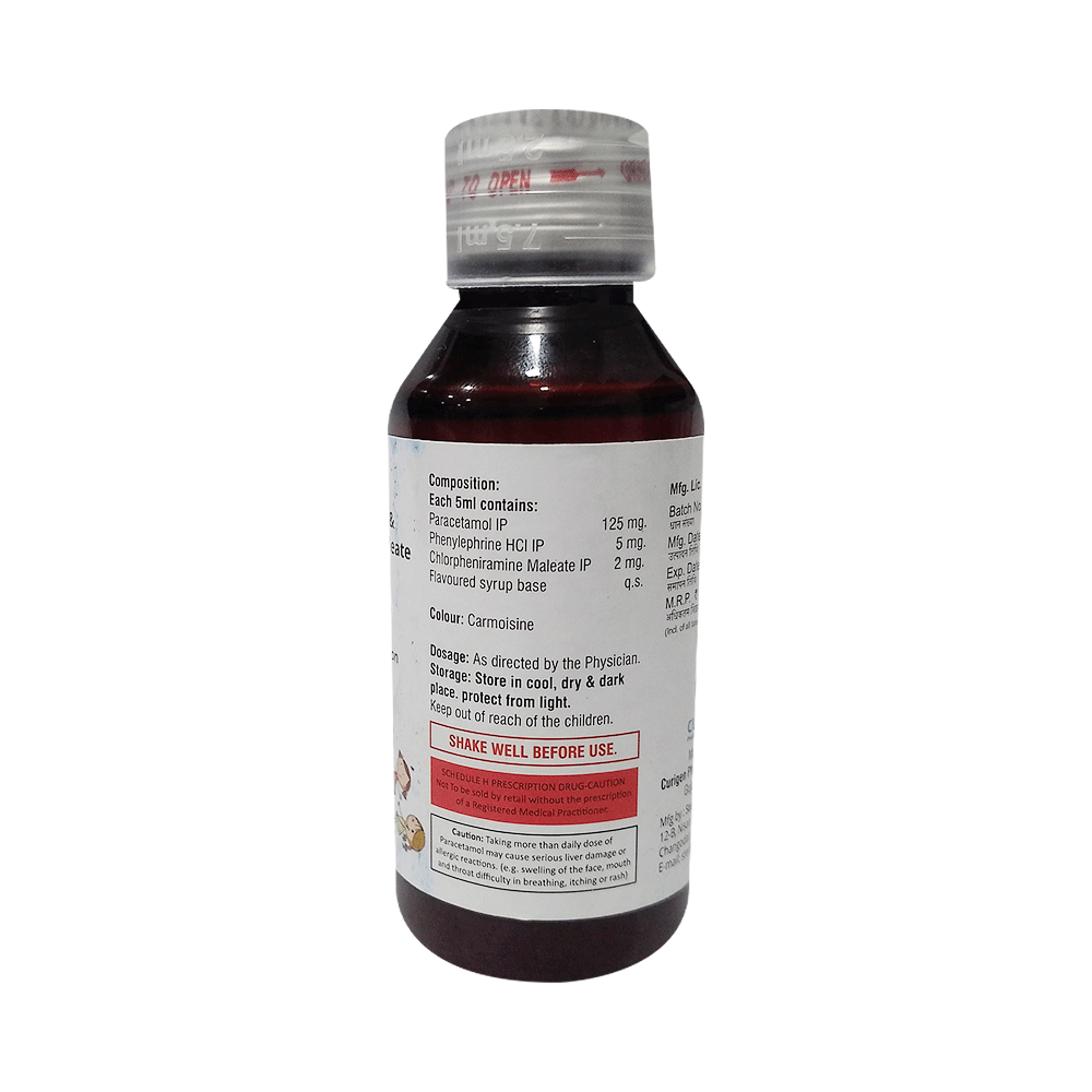 Salt Composition: Chlorpheniramine Maleate (2mg/5ml) + Paracetamol (125mg/5ml) + Phenylephrine (5mg/5ml)