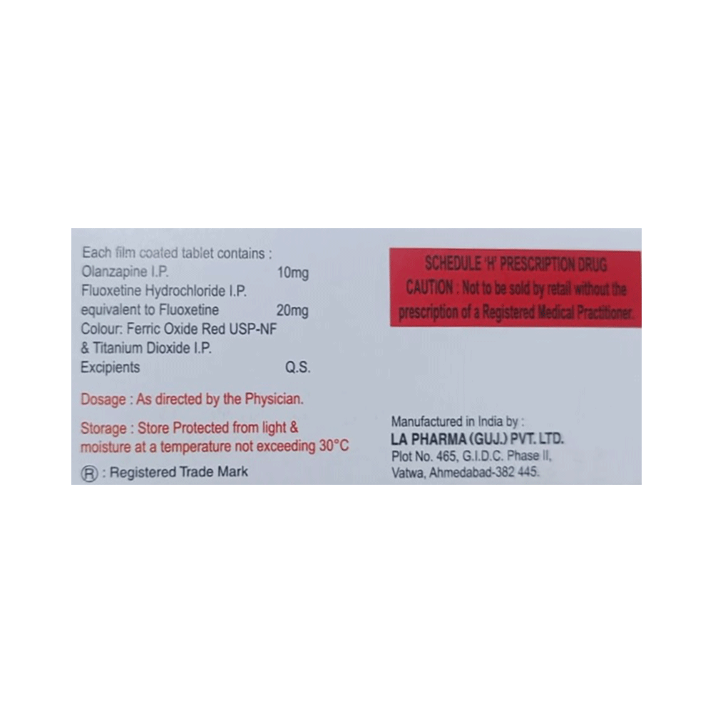 Salt Composition: Fluoxetine (20mg) + Olanzapine (10mg)