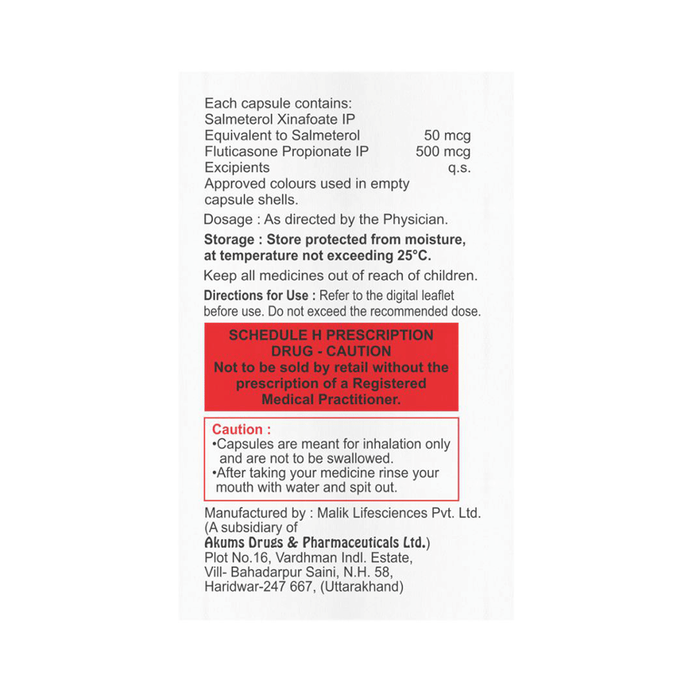 Salt Composition: Salmeterol (50mcg) + Fluticasone Propionate (500mcg)