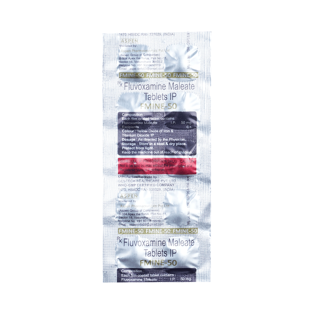 Fmine 50 Tablet is a type of antidepressant belonging to the selective serotonin reuptake inhibitor (SSRI) group of medicines. It is prescribed to treat depression, where it helps to make you feel better. This medicine is also used to treat people with obsessive-compulsive disorder. Fmine 50 Tablet can be taken with or without food. The dose and how often you need it will be decided by your doctor so that you get the right amount to control your symptoms. Your doctor may start you on a lower dose and increase it gradually. Do not change the dose or stop taking it without talking to your doctor, even if you feel well. Doing so may make your condition worse or you may suffer from unpleasant withdrawal symptoms (anxiety, restlessness, palpitations, dizziness, sleep disturbances, etc).To get the most benefit, take this medicine regularly at the same time each day. It may take a few weeks before you start feeling better. Let your doctor know if you do not see any improvement even after 4 weeks.Fmine 50 Tablet has been reported to have fewer side effects than older antidepressants. Some common side effects of this medicine include nausea, vomiting, fatigue, dry mouth, increased sweating, tremors, insomnia (difficulty in sleeping), decreased sexual drive, delayed ejaculation, and erectile dysfunction. Some people may experience sleepiness after taking this medicine. Let your doctor know if you develop any sudden worsening of mood or any thoughts about harming yourself.Before taking this medicine, you should tell your doctor if you have epilepsy (seizure disorder or fits), diabetes, liver or kidney disease, heart problems, or glaucoma. These may affect your treatment. Pregnant or breastfeeding women should also consult their doctor before taking it. Some other medicines may affect the way it works, especially other antidepressants and medicines called MAO inhibitors. Please tell your doctor about all the medicines you are taking to make sure you are safe.