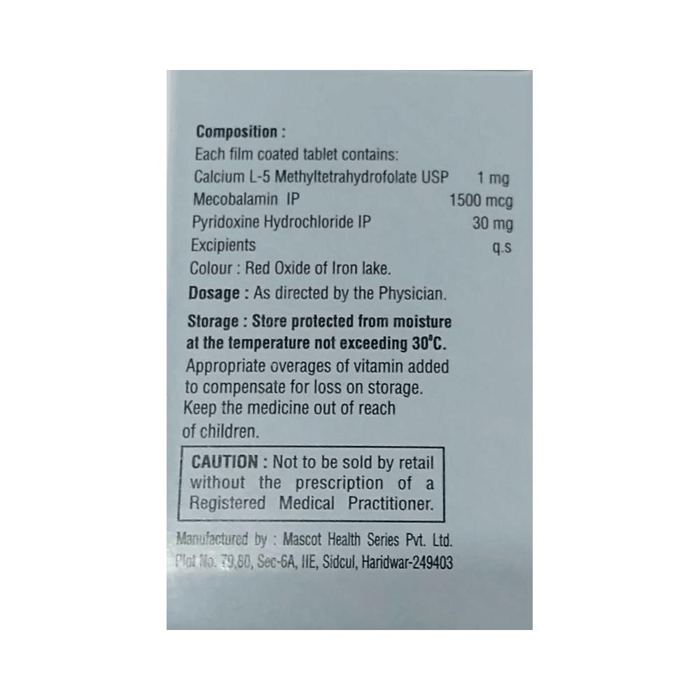 Salt Composition: L-Methyltetrahydrofolate Clacium (1mg) + Methylcobalamin (1500mg) + Pyridoxal-5-phosphate (30mg)