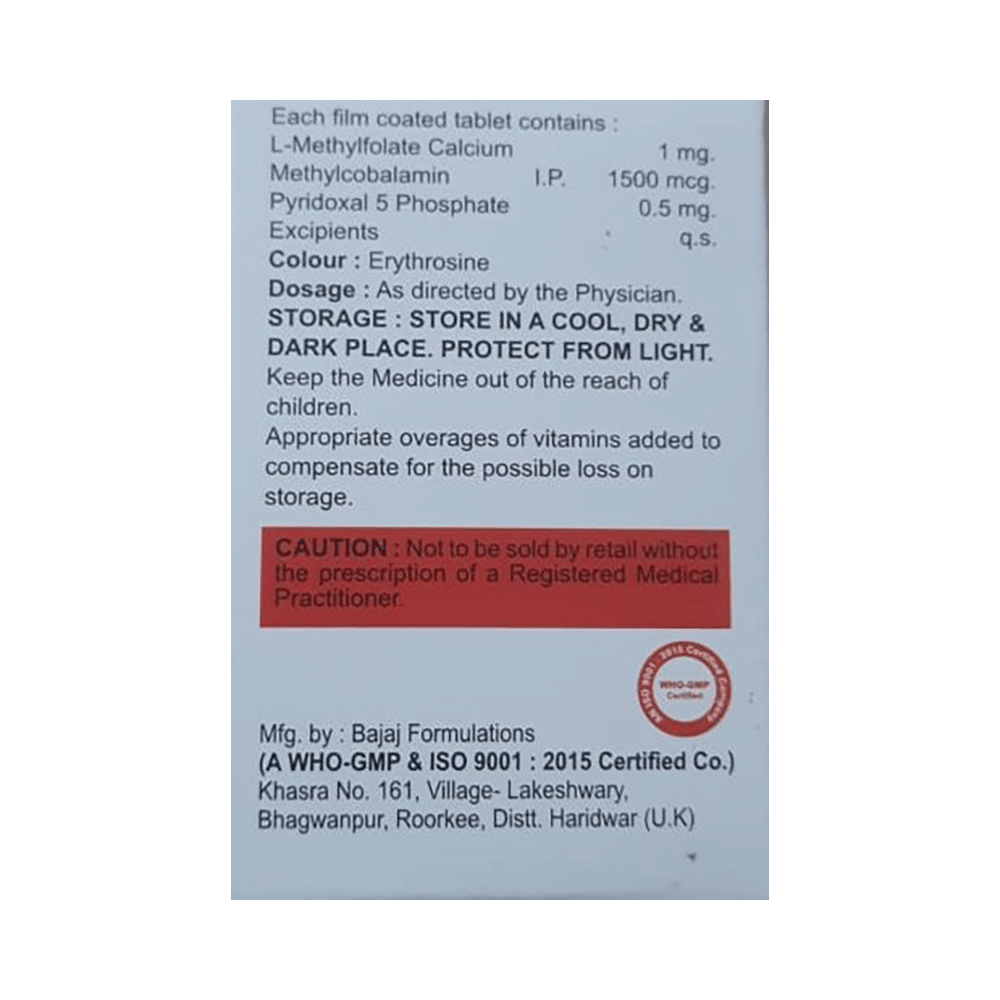 Salt Composition: L-Methyl Folate (1mg) + Methylcobalamin (1500mcg) + Pyridoxal-5-phosphate (0.5mg)