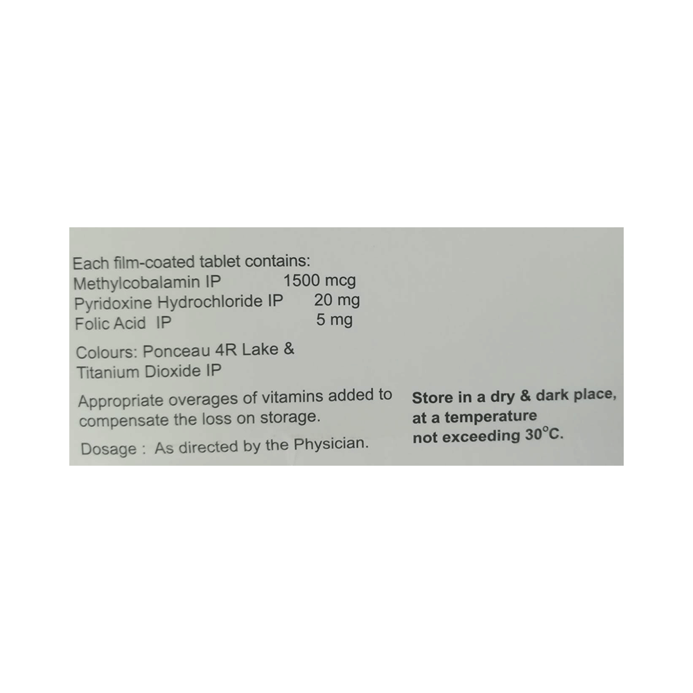 Salt Composition: Methylcobalamin (1500mcg) + Vitamin B6 (Pyridoxine) (20mg) + Folic Acid (5mg)