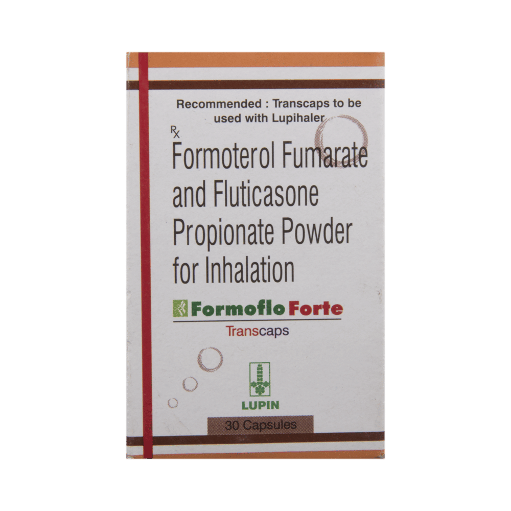 Formoflo Forte Transcaps is a combination of two medicines: Formoterol and Fluticasone Propionate. Formoterol is a long-acting bronchodilator which works by relaxing the muscles in the airways and widens the airways. Fluticasone Propionate is a steroid. It works by stopping the release of certain chemical messengers that cause inflammation (swelling) of the airways. Together, they make breathing easier.