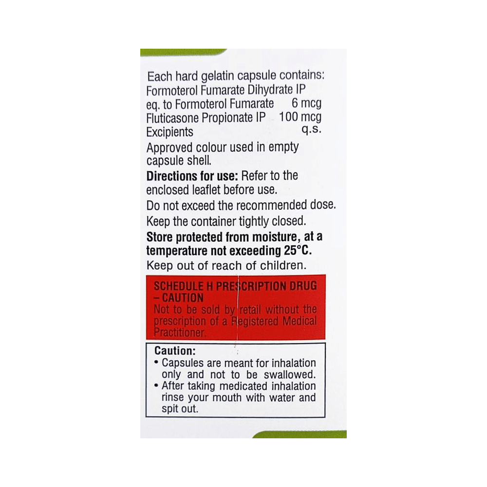 Salt Composition: Formoterol (6mcg) + Fluticasone Propionate (100mcg)