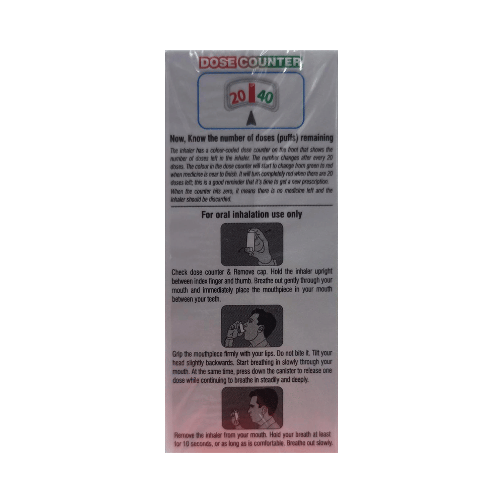 Check the label for directions before use. Shake the inhaler. While you are breathing in from mouth, press down on the inhaler one time to release the medication and hold your breath for 10 seconds. Repeat until you have inhaled the number of puffs as suggested by the doctor.Afterwards, rinse your mouth thoroughly with water and spit it out.