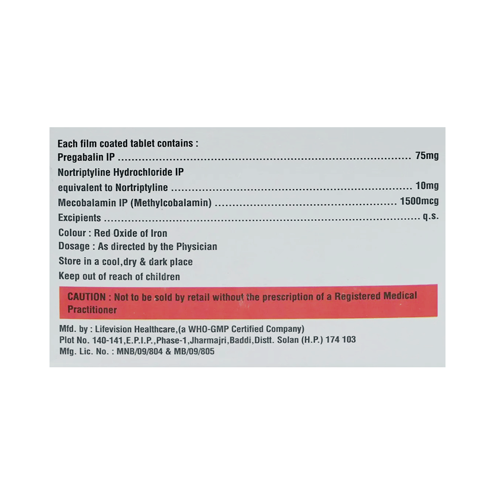 Salt Composition: Pregabalin (75mg) + Nortriptyline (10mg) + Methylcobalamin (1500mcg)