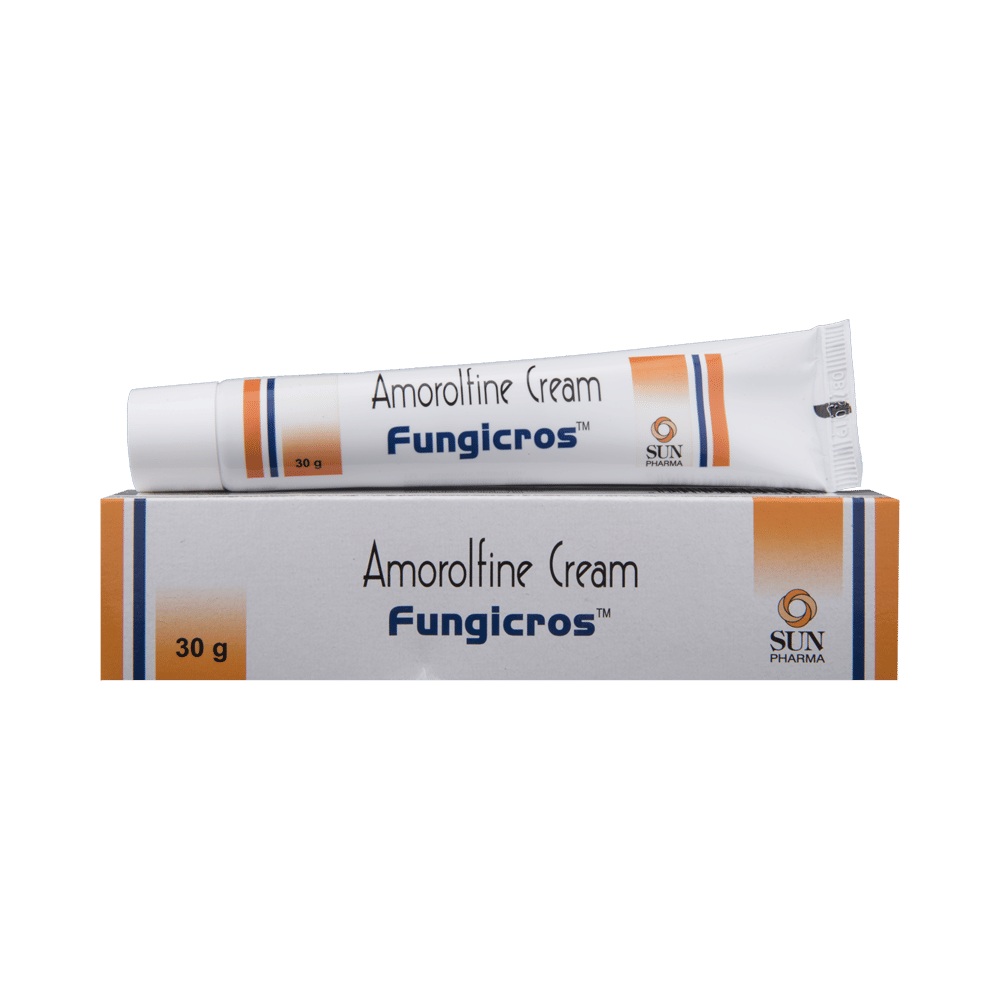 Fungicros Cream is a medicine used to treat various types of fungal skin and nail infections. It kills the fungus causing the infection, which helps to relieve the symptoms such as redness, swelling, itching, etc. Fungicros Cream is only meant for external use and should be used as advised by your doctor. A thin layer of the medicine should be applied only to the affected areas of the skin with clean and dry hands. If it gets into your eyes, nose, and mouth rinse with water. It may take several weeks for your symptoms to improve and you should keep using this medicine regularly. The entire course of the treatment should be completed to ensure that the infection does not come back. If your condition does not improve or gets worse, you should talk to your doctor.This is usually a safe medicine with limited or no side effects. You must consult the doctor if you experience any allergic reaction (rashes, itching, swelling, shortness of breath, etc.).Before taking this medicine, it is important to tell your doctor if you are taking or have recently taken any other medicines. Pregnant and breastfeeding women should consult with the doctor before taking this medicine.