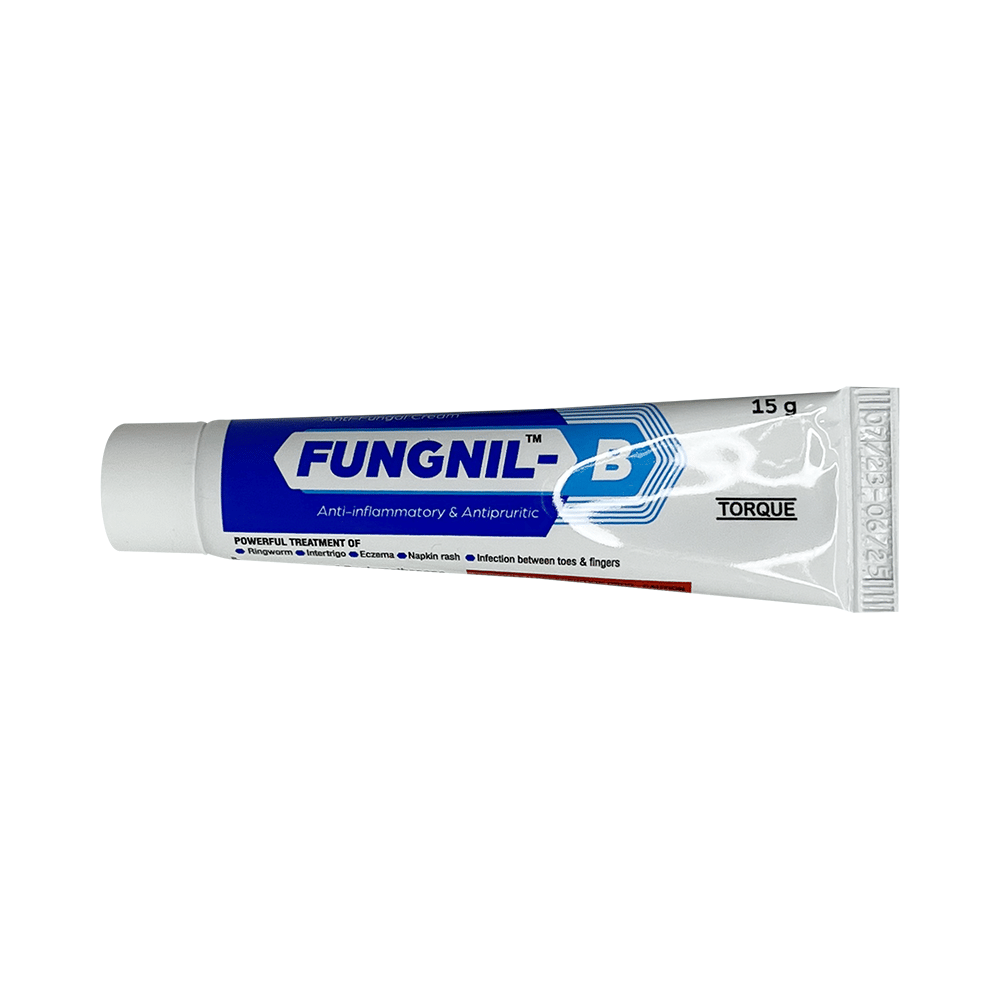 Fungnil-B Cream is a combination medicine. It is used to treat various types of skin infections usually the fungal type of skin infections. It minimizes symptoms of inflammation such as redness, swelling, and itching. It also acts against the infection-causing microorganisms. Fungnil-B Cream is only meant for external use and should be used as advised by your doctor. A thin layer of the medicine should be applied only to the affected areas of the skin with clean and dry hands. If it gets into your eyes, nose, mouth, or vagina rinse with water. It may take several days to weeks for your symptoms to improve, but you should keep using this medicine regularly. The course of the treatment should be completed to ensure better efficacy of the medicine. If your condition does not improve or gets worse, you should talk to your doctor.The most common side effect of this medicine includes dryness and paresthesia (tingling or pricking sensation). These are usually self-limiting. Serious side effects are rare. Consult your doctor if you experience any allergic reaction (rashes, itching, swelling, shortness of breath, etc.).Before taking this medicine, it is important to tell your doctor if you are taking or have recently taken any other medicines for the same disease or other diseases. Pregnant and breastfeeding women should take this medicine with proper consultation and caution.