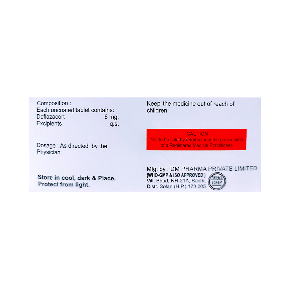 G-Def 6 Tablet is a corticosteroid. It increases the level of glucocorticoid in the body and works by decreasing the formation of substances that cause inflammation and suppresses immunity to stop self damage to the body by the immune system (auto-immune reactions occurring in organ transplants or cancer).