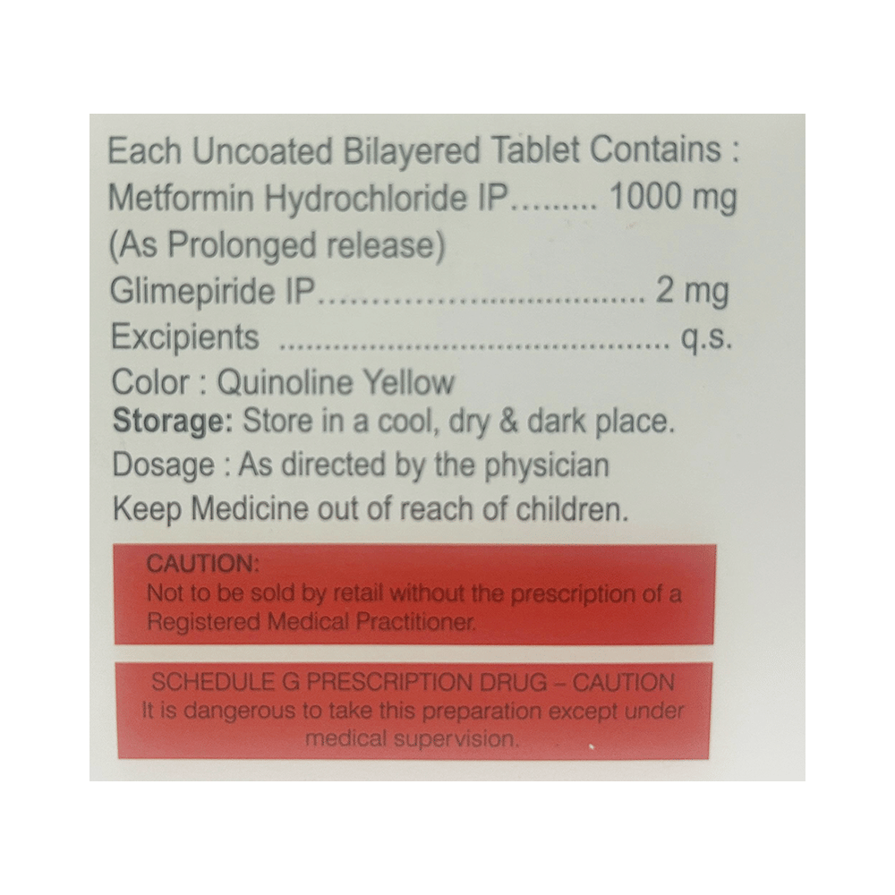 Salt Composition: Glimepiride (2mg) + Metformin (1000mg)