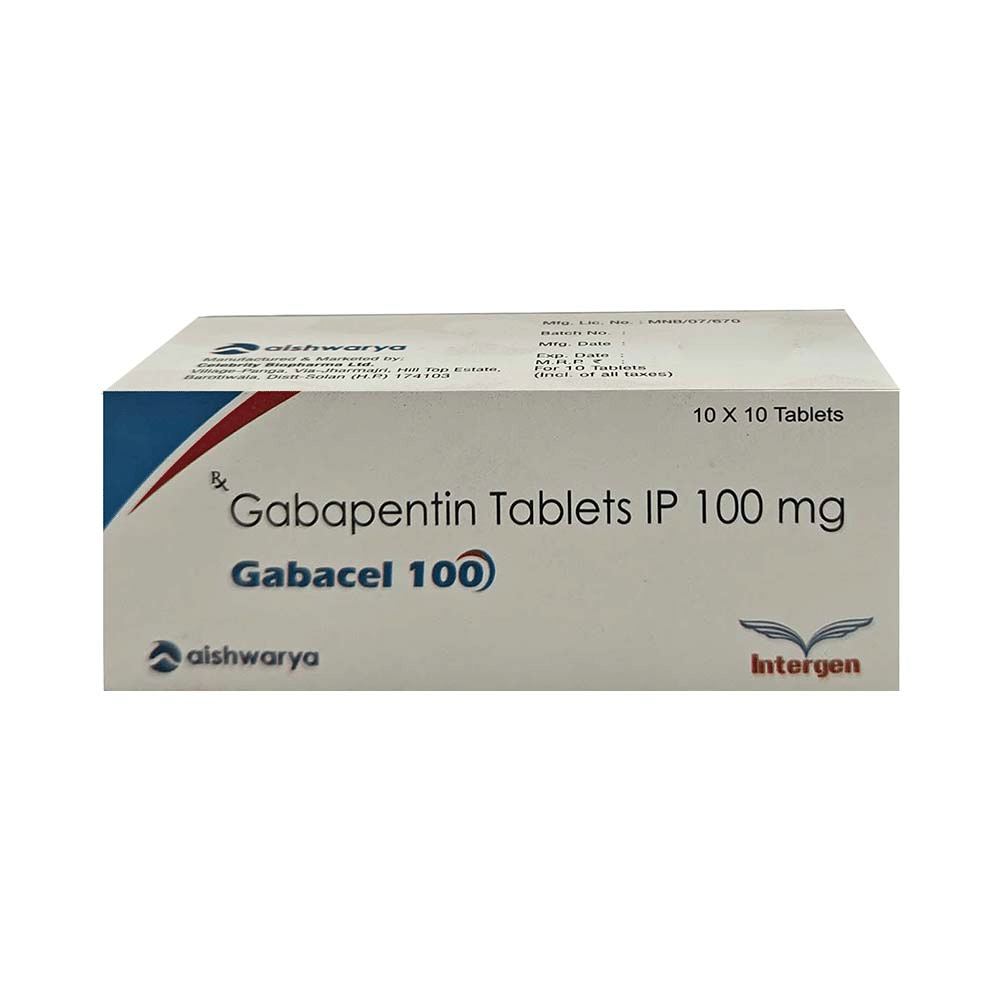 Gabacel 100mg Tablet is a medicine used to relieve the pain caused by nerve damage (neuropathic pain) due to various conditions like diabetes, shingles (herpes zoster infection), spinal cord injury, etc. It is also used to treat certain types of seizures (fits) in combination with other medicines. Gabacel 100mg Tablet belongs to the anti-epileptic group of medicines. You may take it with or without food, but it is important to take this medicine at the same time each day to get the most benefit. The exact dose and duration of treatment will depend on your condition and how you respond to it. Your doctor will probably start this medicine at a low dose and increase it gradually. It may take a few weeks for the medicine to work properly. Follow your doctor’s instructions and continue taking it regularly until your doctor advises you to stop. Do not miss any dose, otherwise, your condition may worsen.Most people taking Gabacel 100mg Tablet do not experience any side effects. The most common ones are feeling sleepy, dizzy, or tired (fatigue). These are usually mild and go away by themselves as your body gets used to the medicine. Most side effects are not serious and do not need medical attention. Talk to your doctor if any of the side effects persist or worry you.You should avoid drinking alcohol along with this medicine as it may lead to excessive sleepiness and dizziness. Let your doctor know right away if you develop any unusual mood changes like anxiety, agitation, depression, or thoughts about harming yourself.Before taking Gabacel 100mg Tablet, you should tell your doctor if you have any kidney-related problems or if you are more than 65 years old. Your doctor may prescribe a different dose in such people. Women who are pregnant, breastfeeding, or planning to become pregnant should also consult their doctor before using this medicine.