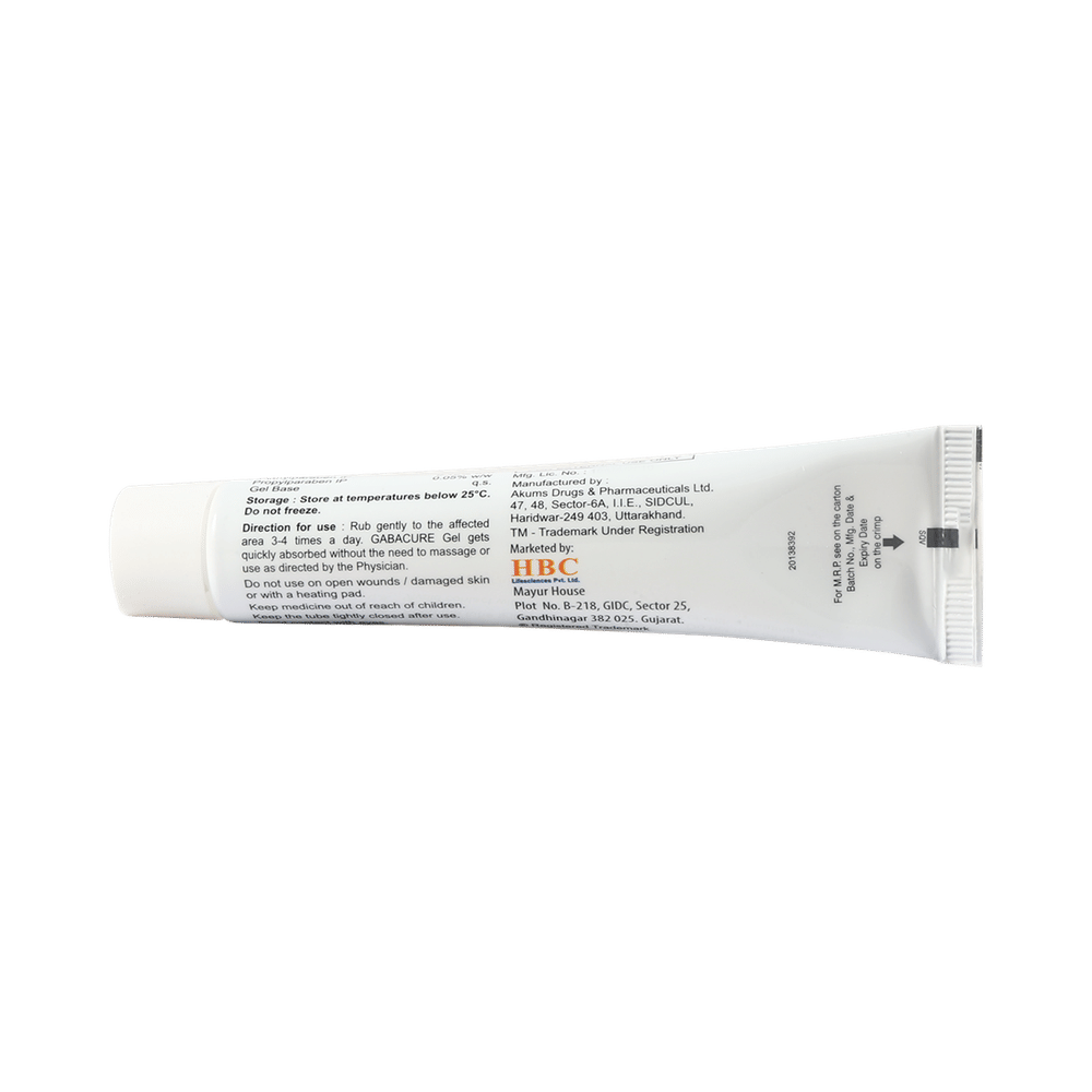 Gabacure Gel is used for the treatment of neuropathic pain. It works by cooling the skin then warming it up. This cooling and warming up action blocks the pain signal transmission through nerves to reach the brain and decreases the pain sensation. Gabacure Gel is for external use only. You should use it in the dose and duration as advised by your doctor. You must wash your hands thoroughly before and after applying this medicine. This medicine should be used regularly to get the most benefit from it. Do not stop using it until you have finished the complete course, even when you feel better.The most common side effects of this medicine include application site reactions like burning, irritation, itching, and redness. These are usually mild but let your doctor know if they bother you or last more than a few days. Avoid direct contact with eyes, nose, or mouth. If accidental exposure occurs, rinse immediately with plenty of water. Before using this medicine inform your doctor if you are pregnant.