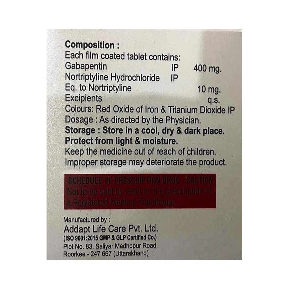 Salt Composition: Gabapentin (400mg) + Nortriptyline (10mg)