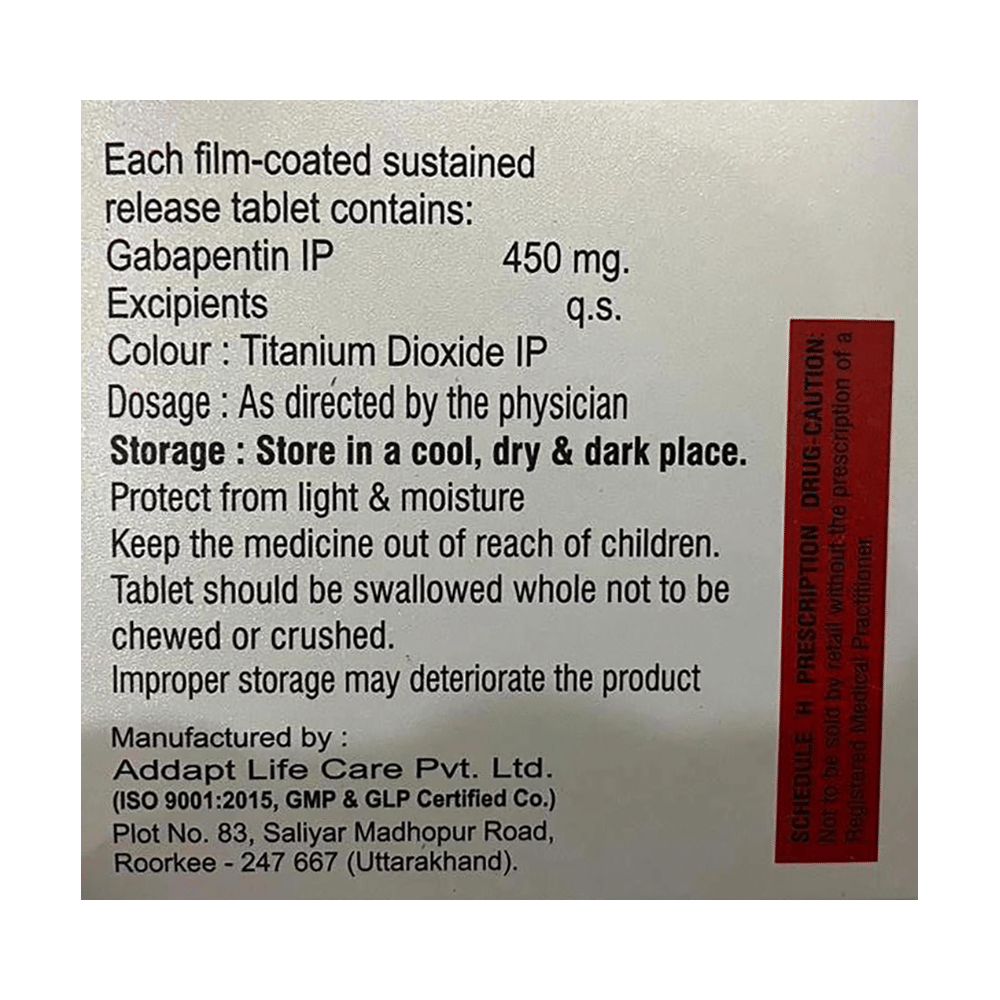 Salt Composition: Gabapentin (450mg)