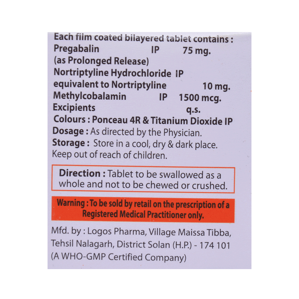 Salt Composition: Pregabalin (75mg) + Nortriptyline (10mg) + Methylcobalamin (1500mcg)