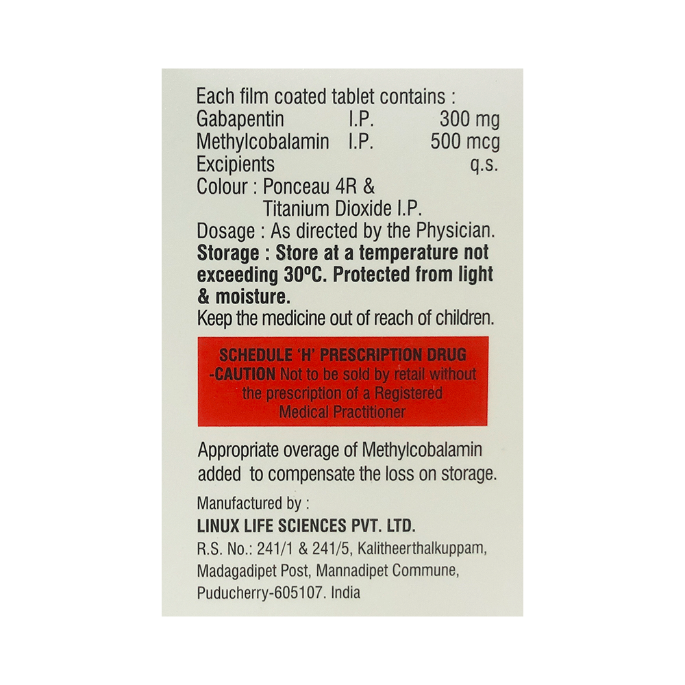 Salt Composition: Gabapentin (300mg) + Methylcobalamin (500mcg)