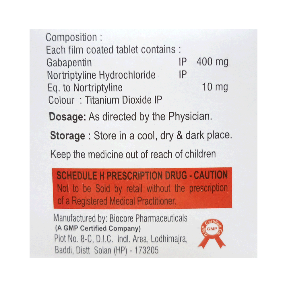Salt Composition: Gabapentin (400mg) + Nortriptyline (10mg)