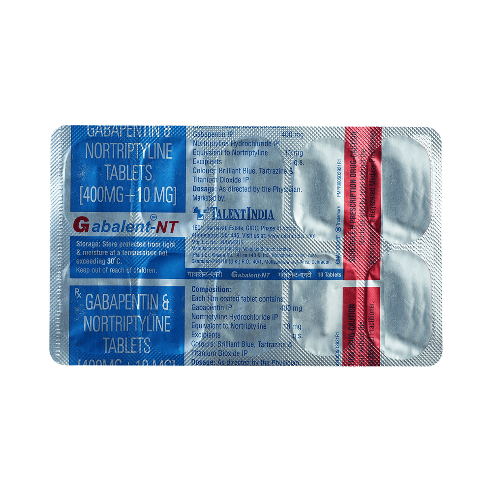 Gabalent-NT Tablet is a combination of two medicines: Gabapentin and Nortriptyline. Gabapentin is an alpha 2 delta ligand which decreases the pain by modulating calcium channel activity of the nerve cells. Nortriptyline is a tricyclic antidepressant which increases the levels of chemical messengers (serotonin and noradrenaline) that stop the movement of pain signals in the brain. Together, they relieve neuropathic pain (pain from damaged nerves).
