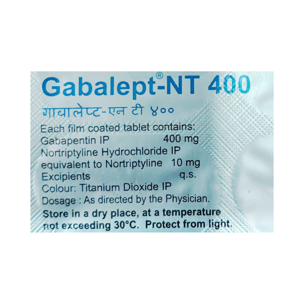 Gabalept NT 400mg/10mg Tablet is a combination of two medicines: Gabapentin and Nortriptyline. Gabapentin is an alpha 2 delta ligand which decreases the pain by modulating calcium channel activity of the nerve cells. Nortriptyline is a tricyclic antidepressant which increases the levels of chemical messengers (serotonin and noradrenaline) that stop the movement of pain signals in the brain. Together, they relieve neuropathic pain (pain from damaged nerves).