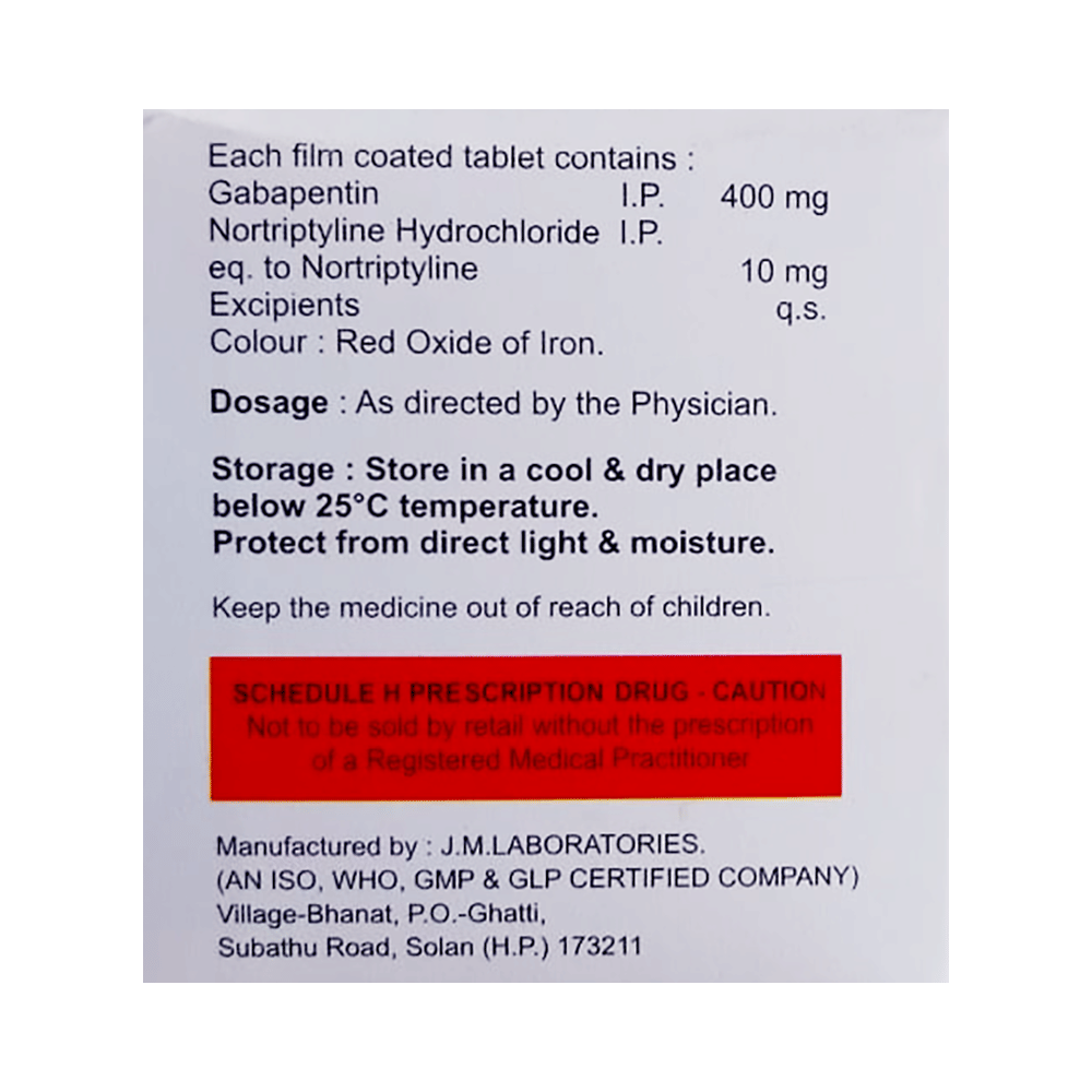 Salt Composition: Gabapentin (400mg) + Nortriptyline (10mg)