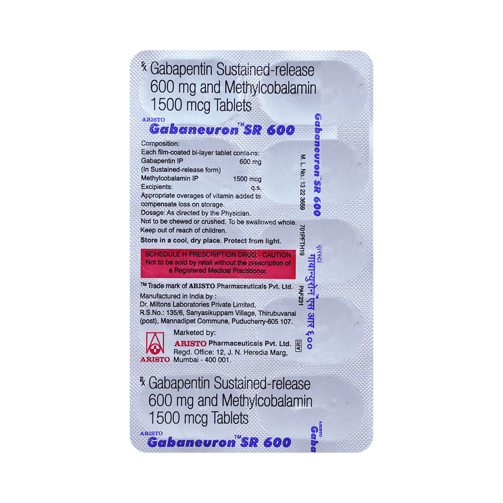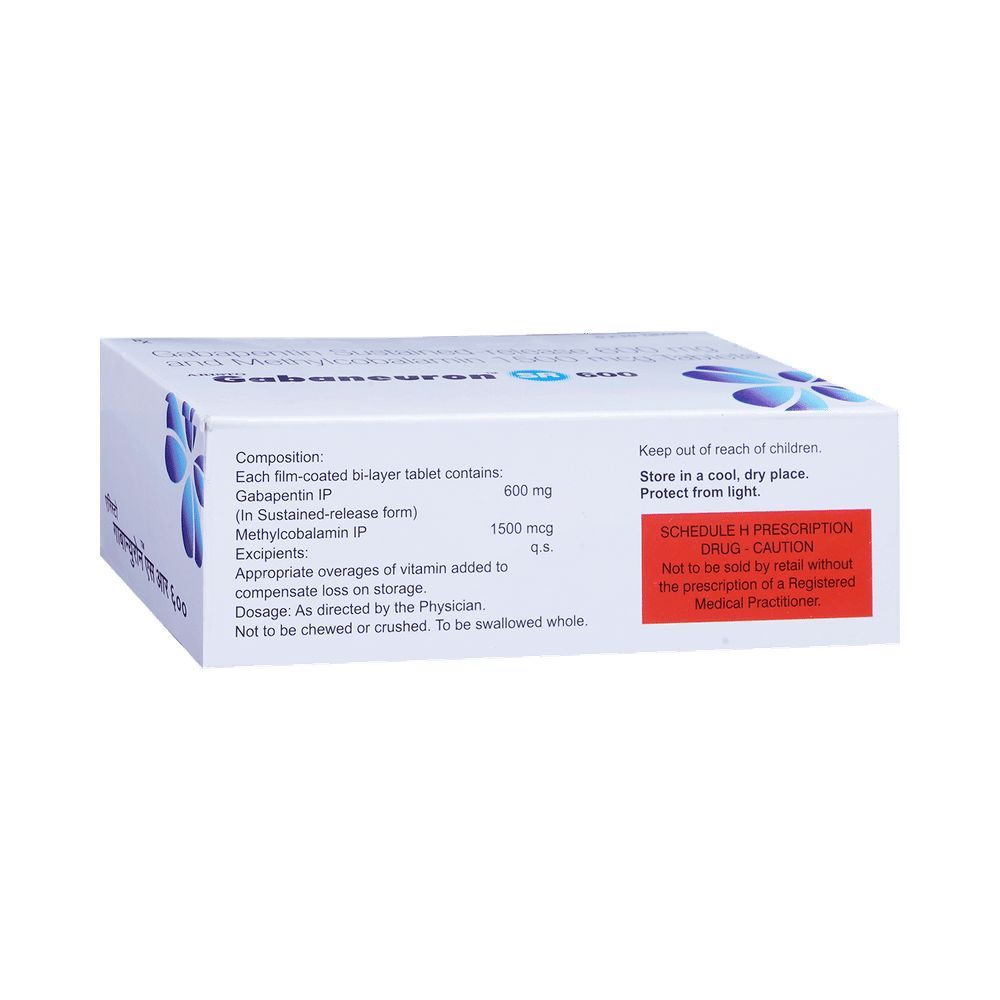 Gabaneuron SR 600 Tablet is a combination medicine used for the treatment of neuropathic pain. This medicine decreases pain by modulating calcium channel activity of the nerve cells. Gabaneuron SR 600 Tablet is taken by mouth with or without food, preferably at bedtime. It is advised to take medicine at the same time each day as this helps to maintain a consistent level of medicine in the body. Take this medicine in the dose and duration advised by your doctor. If you miss a dose of this medicine, take it as soon as you remember. Finish the full course of treatment even if you feel better. It is important that this medication is not stopped suddenly without talking to the doctor.Some common side effects of this medicine are nausea, peripheral edema, ataxia, blurred vision, fever and nystagmus (involuntary eye movement). It may also cause dizziness and sleepiness, so do not drive or do anything that requires mental focus until you know how this medicine affects you. It is important to inform your doctor if you develop any unusual changes in mood or behavior, new or worsening depression, or suicidal thoughts.Before taking the medicine you should tell your doctor if you are pregnant, planning to become pregnant, or breastfeeding. It can usually be mixed safely with other medicines but some drugs (including antacids and alcohol) do affect the way it works and can increase the chance of side effects.