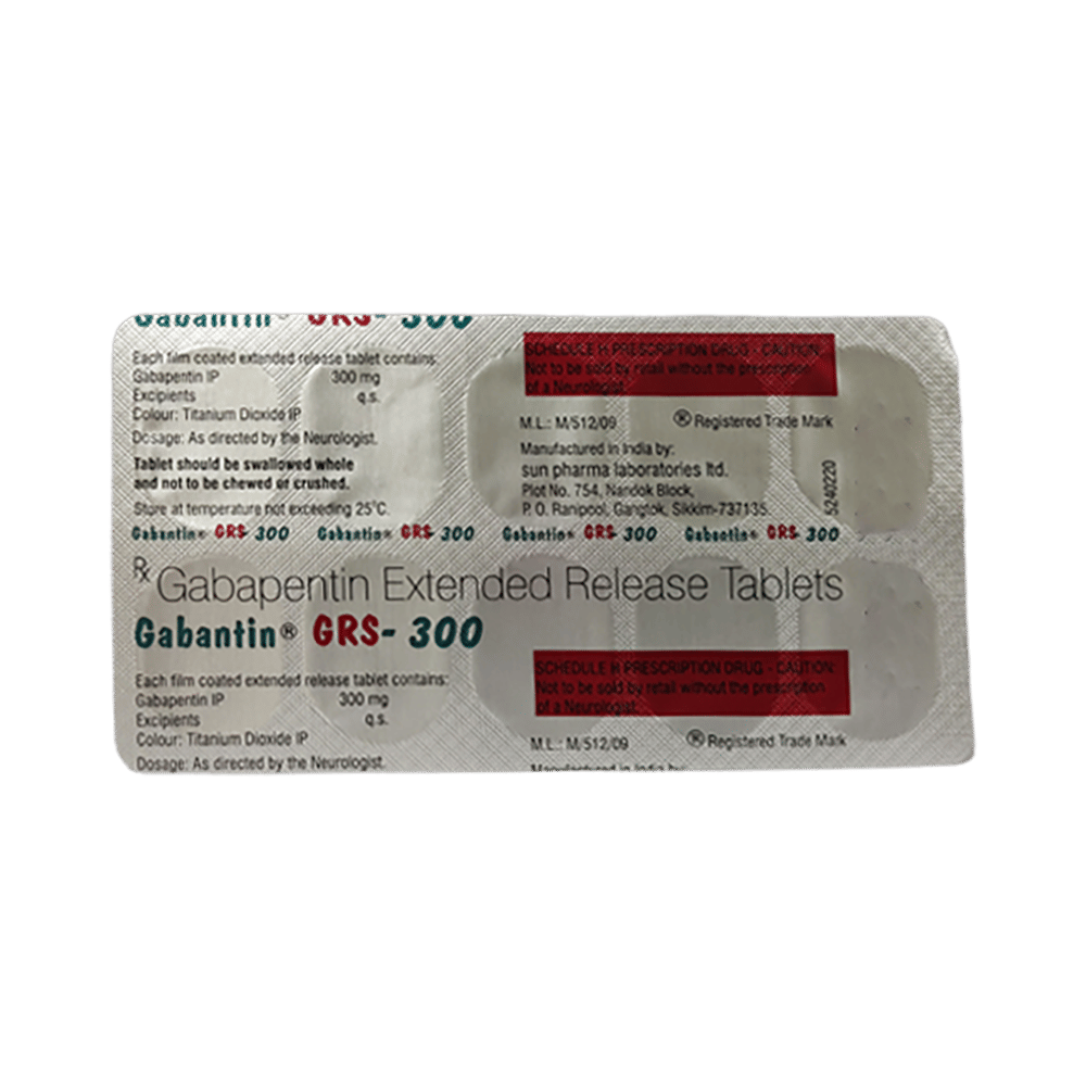 In Neuropathic painGABAntin GRS 300 Tablet ER is used to treat long-lasting (chronic) pain caused by nerve damage due to diabetes, shingles or spinal cord injury. It reduces pain and its associated symptoms such as mood changes, sleep problems, and tiredness. It is thought to work by interfering with pain signals that travel through the damaged nerves and the brain. Taking this medicine regularly will improve your physical and social functioning and overall quality of life. It takes a few weeks to work so you need to take it regularly even if you feel it is not doing any good. Once your symptoms have gone you should still keep taking the medicine until your doctor advises you to stop.In Epilepsy/SeizuresGABAntin GRS 300 Tablet ER belongs to a group of medicines called anticonvulsants which is used to treat some forms of epilepsy in adults. It is thought to work by slowing down nerve impulses in the brain which cause seizures (fits). It helps reduce symptoms such as confusion, uncontrollable jerking movements, loss of awareness and fear or anxiety. It will help you go about your daily activities with more confidence and may allow you to do some activities that you would otherwise be forbidden or scared to do (such as swimming and driving). It can take a few weeks for this medicine to work and during this time you may still have seizures. Do not stop using this medicine even if you feel well, until your doctor advises you to. Missing doses may trigger a seizure. show moreshow less