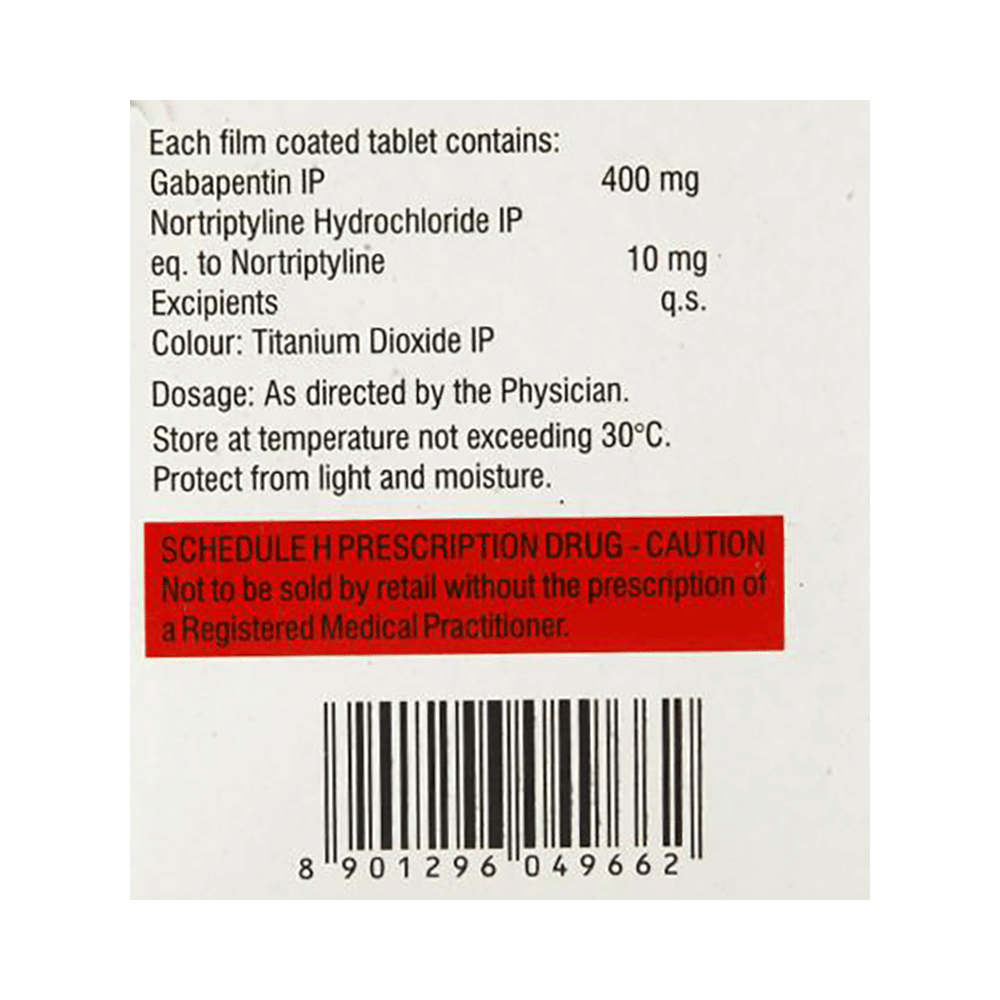 Salt Composition: Gabapentin (400mg) + Nortriptyline (10mg)