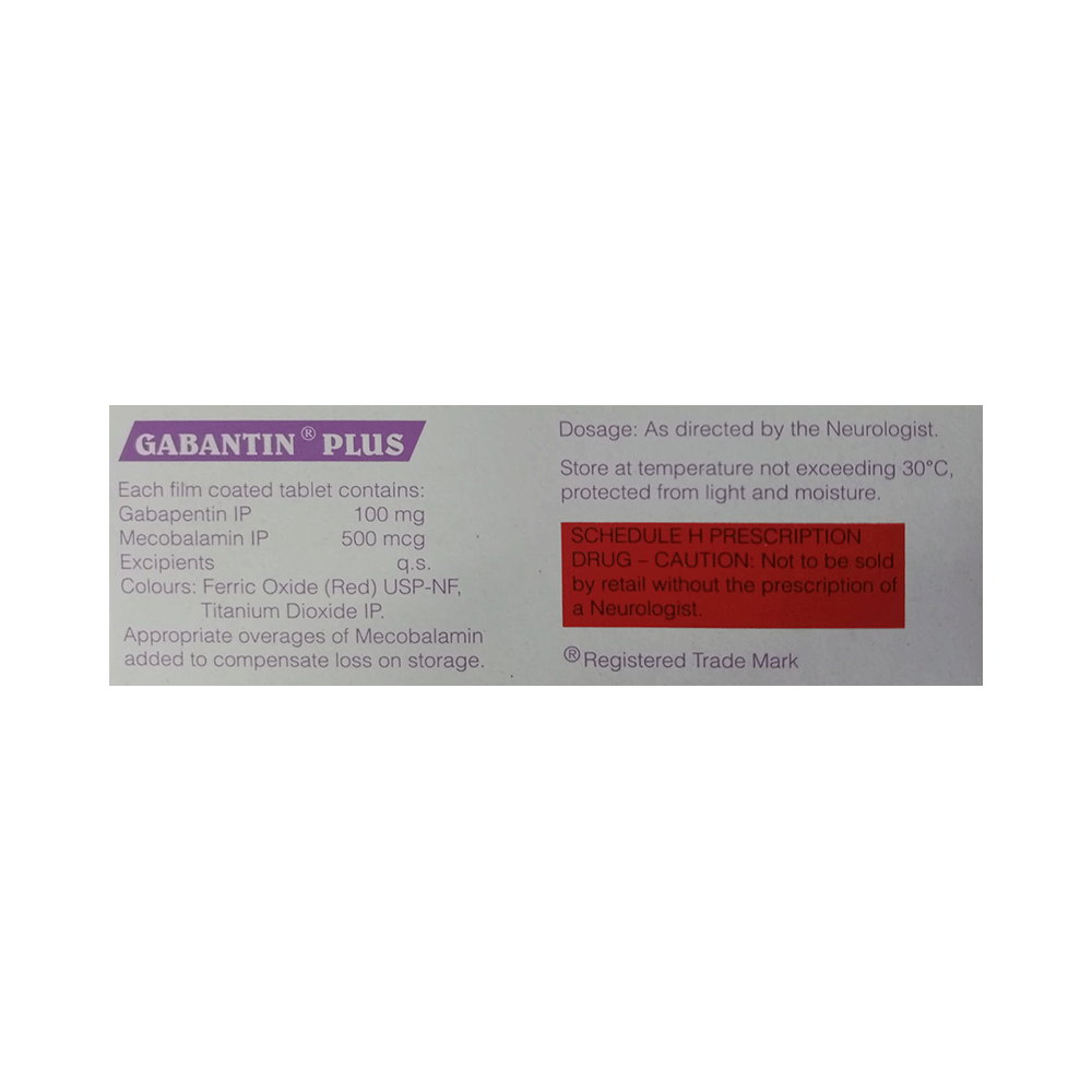 Gabantin Plus Tablet is a combination medicine used for the treatment of neuropathic pain. This medicine decreases pain by modulating calcium channel activity of the nerve cells. Gabantin Plus Tablet is taken by mouth with or without food, preferably at bedtime. It is advised to take medicine at the same time each day as this helps to maintain a consistent level of medicine in the body. Take this medicine in the dose and duration advised by your doctor. If you miss a dose of this medicine, take it as soon as you remember. Finish the full course of treatment even if you feel better. It is important that this medication is not stopped suddenly without talking to the doctor.Some common side effects of this medicine are nausea, peripheral edema, ataxia, blurred vision, fever and nystagmus (involuntary eye movement). It may also cause dizziness and sleepiness, so do not drive or do anything that requires mental focus until you know how this medicine affects you. It is important to inform your doctor if you develop any unusual changes in mood or behavior, new or worsening depression, or suicidal thoughts.Before taking the medicine you should tell your doctor if you are pregnant, planning to become pregnant, or breastfeeding. It can usually be mixed safely with other medicines but some drugs (including antacids and alcohol) do affect the way it works and can increase the chance of side effects.