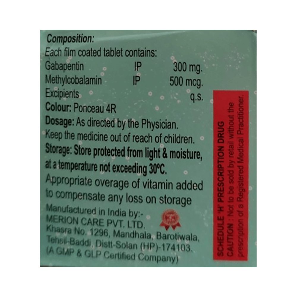 Salt Composition: Gabapentin (300mg) + Methylcobalamin (500mcg)